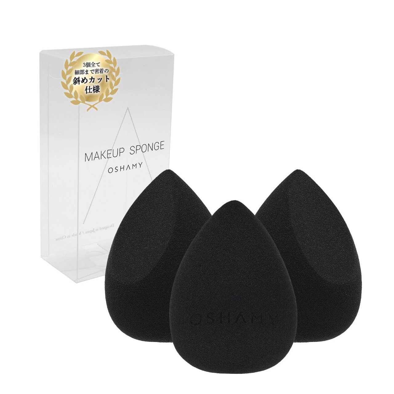 メイクスポンジ 薄付きなのにムラなく仕上げる圧倒的なカバー力 3個セット スポンジパフ メイクパフ メイク用 スポンジ パフ 水しずく型 斜めカット ブラック OSHAMY