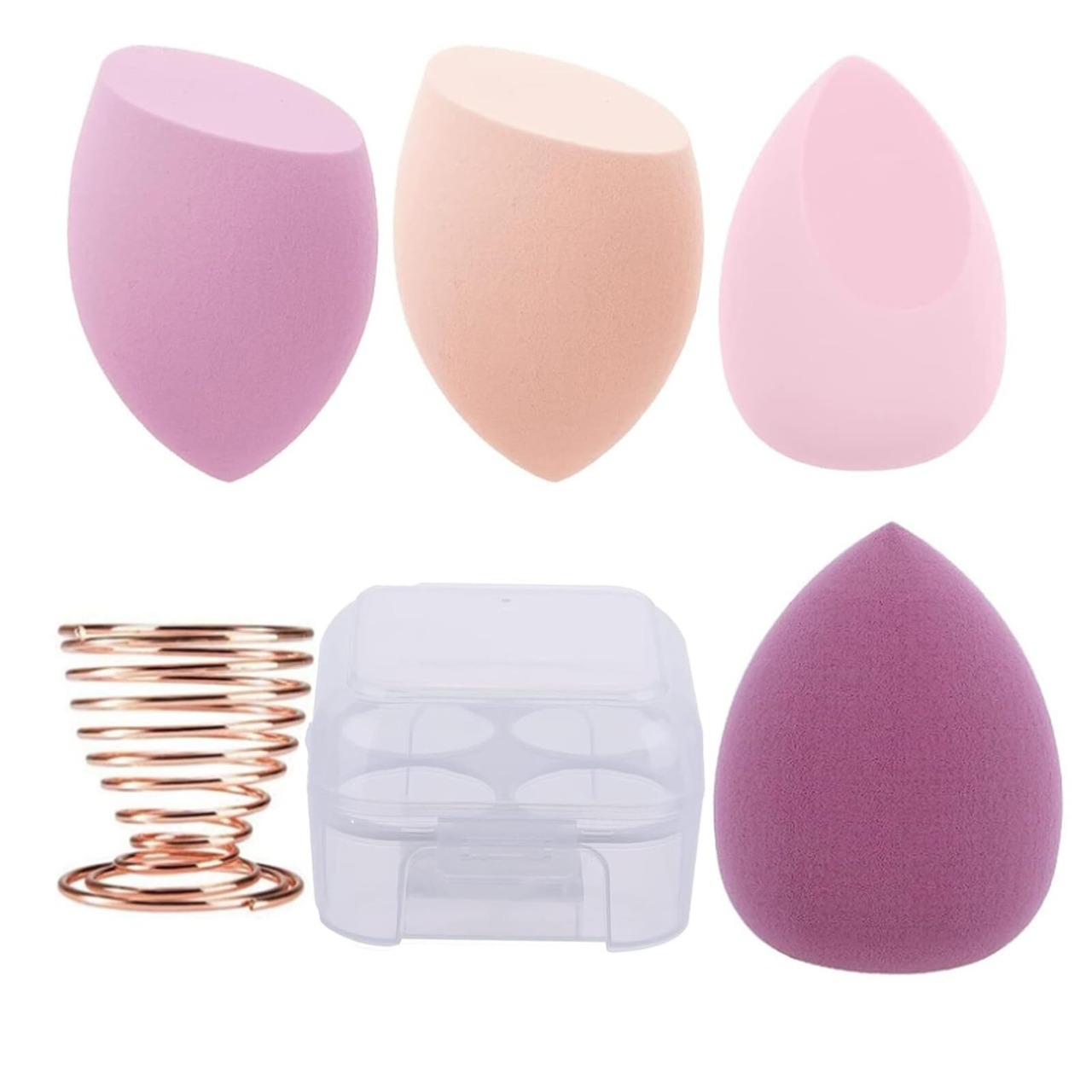 HAPVITAL メイク用スポンジ 4個セット 多機能化粧パフ ファンデーションスポンジ 乾湿兼用 多機能プロメイクスポンジ 金属スタンド1個付き (ピンク)