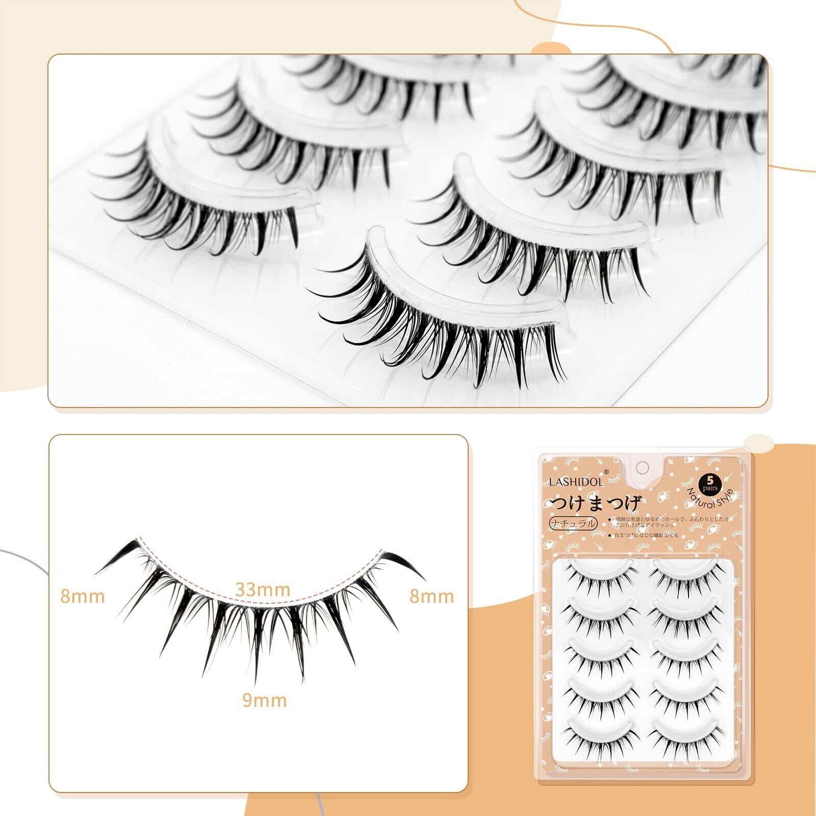 LASHIDOL つけまつげ ナチュラル つけま まつげ つけまつげ 束感 つけまつげ 目尻 束感まつ毛 細い透明軸手作りつけまつ毛 自然 アイドルグループスタイルのつけまつげ(manga lash no.03)