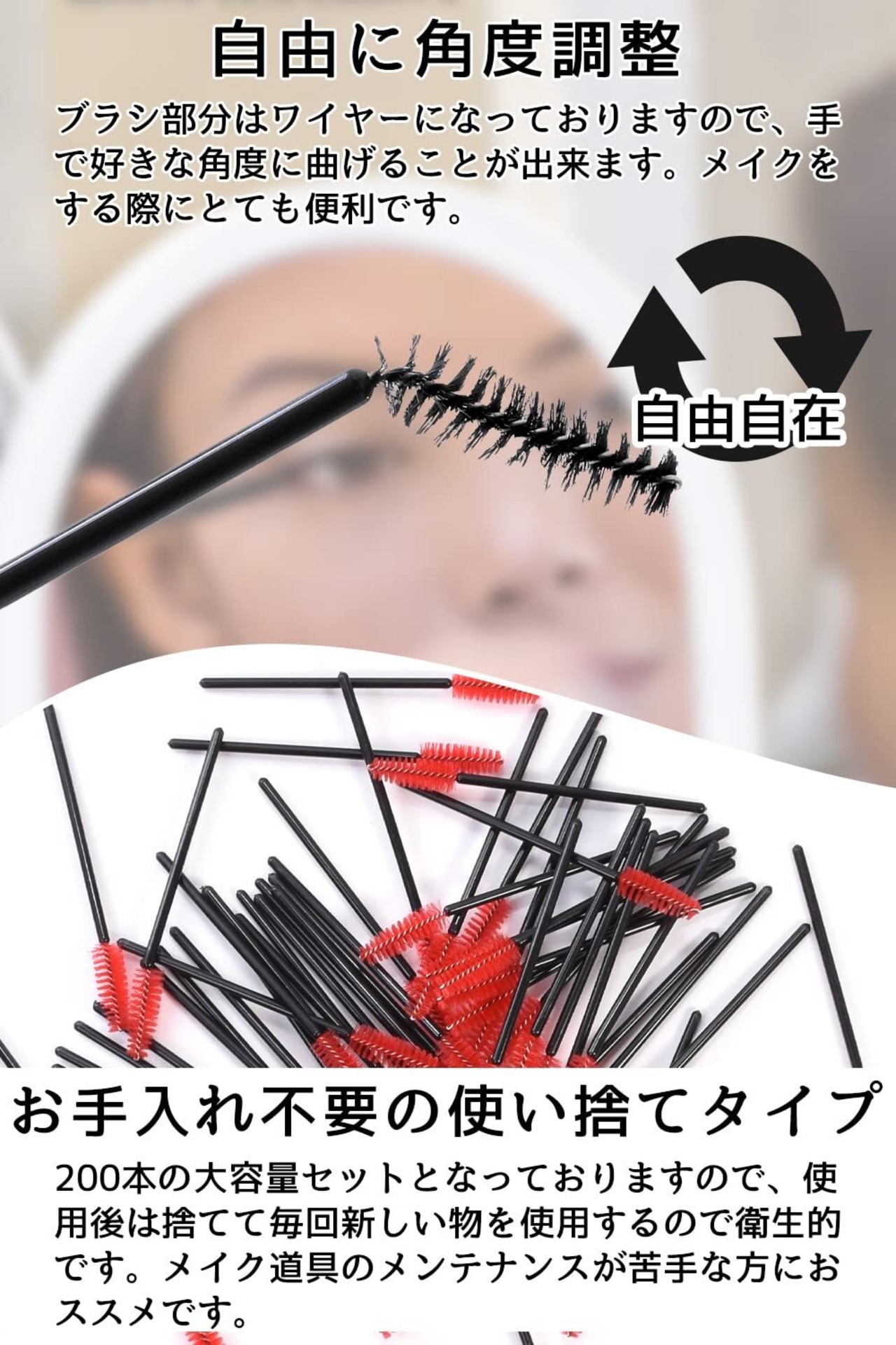 スクリューブラシ マスカラブラシ 【200本入り】[眉毛やまつげのメイクアップにxマスカラのダマがキレイに取れるx洗って再利用もOK] [bumbee] (ブラック)