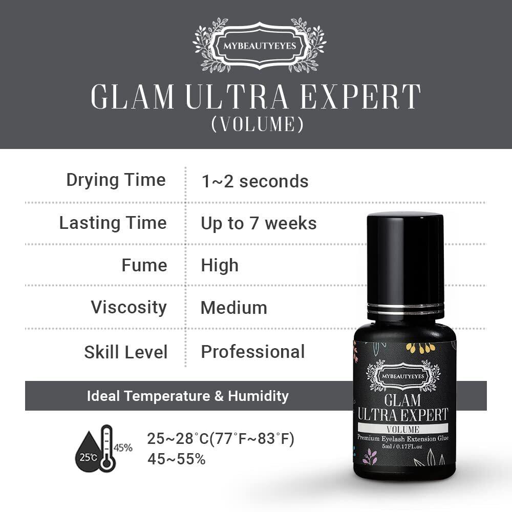 1.早い仕上がりを願う方への商品: MyBeautyEyes Glam Ultra Expert Volumeは従来のGlam Ultra Expertの早さと強さをさらにレベルアップさせた商品です。従来の商品に比べ粘度は薄く、硬化時間は早め、そして接着力を高めました。