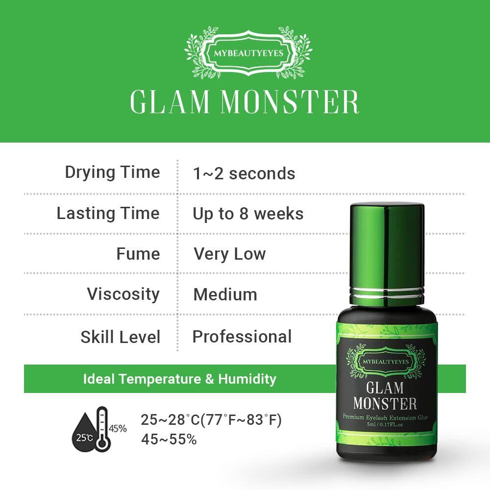 3.低刺激多様グルー: Glam Monsterグルーは1:1施術、ボリューム施術、そしてプリメイドファンなど様々なラッシュに対応でき、臭いや刺激を最小化して制作されたため、敏感なお客様にもお使いいただけます。