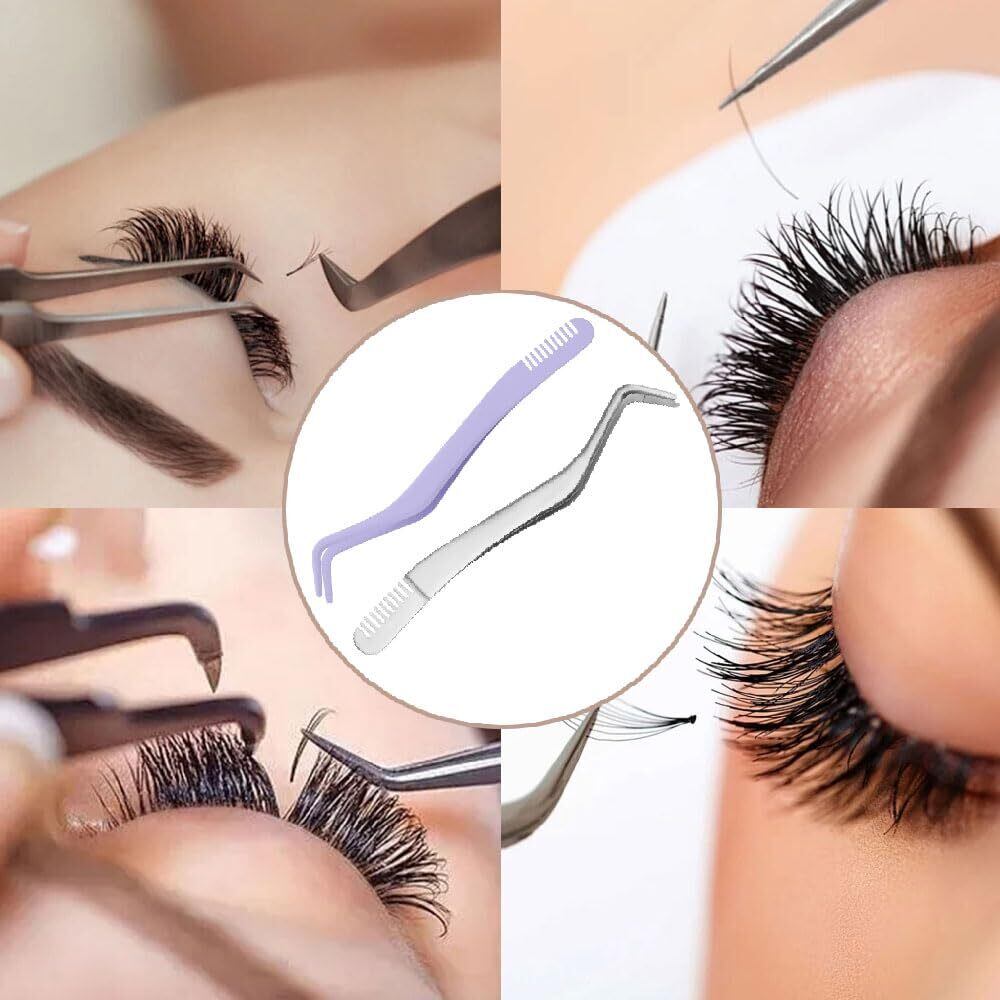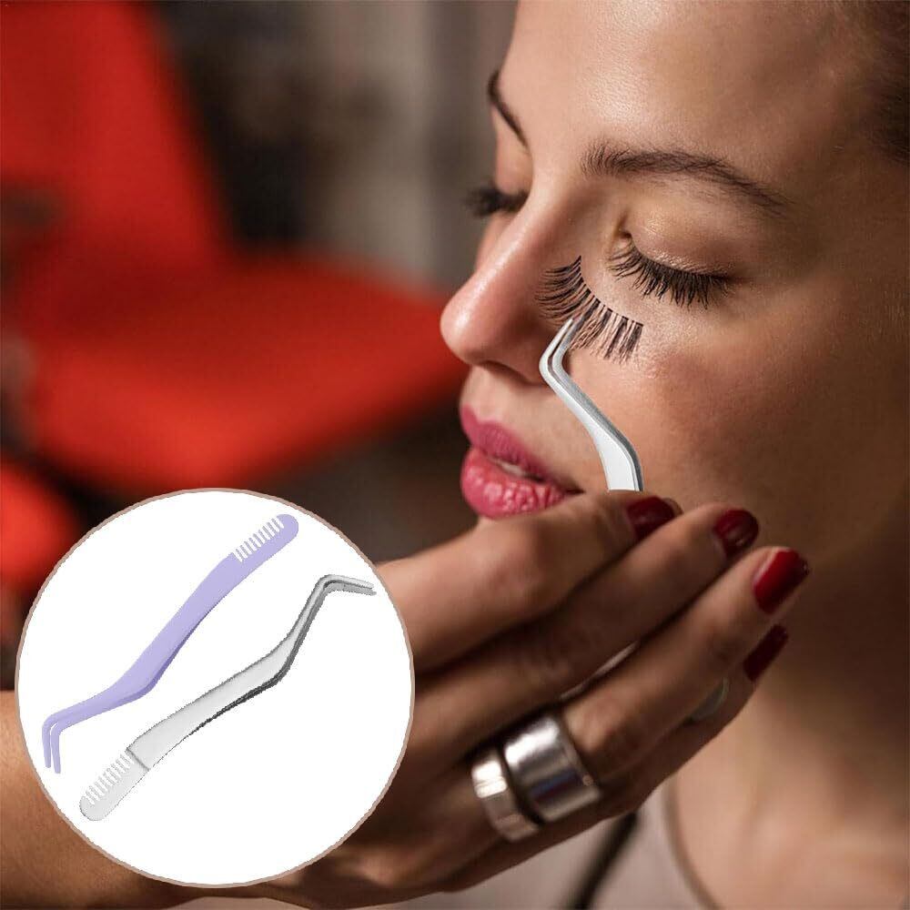 まつ毛 ピンセット、束感 まつ毛 ピンセット、櫛付きステンレス鋼まつげピンセット、まつげアプリケーター (すみれいろ)