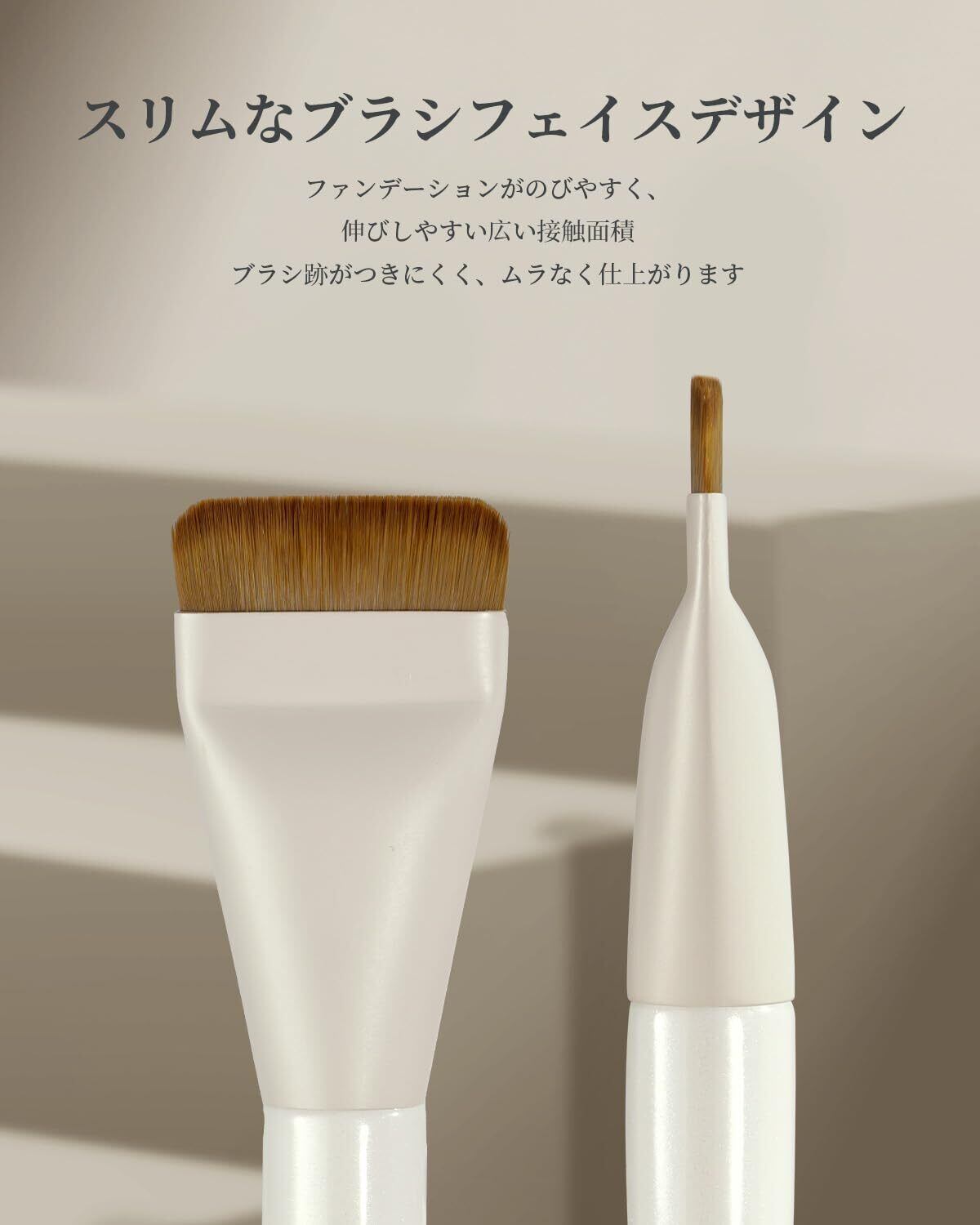 ROWNYEON ファンデーションブラシ 平型 極細 メイクブラシ リキッドファンデ最適 繊維毛 柔らかい 使いやすい 化粧道具 携帯便利 YM266