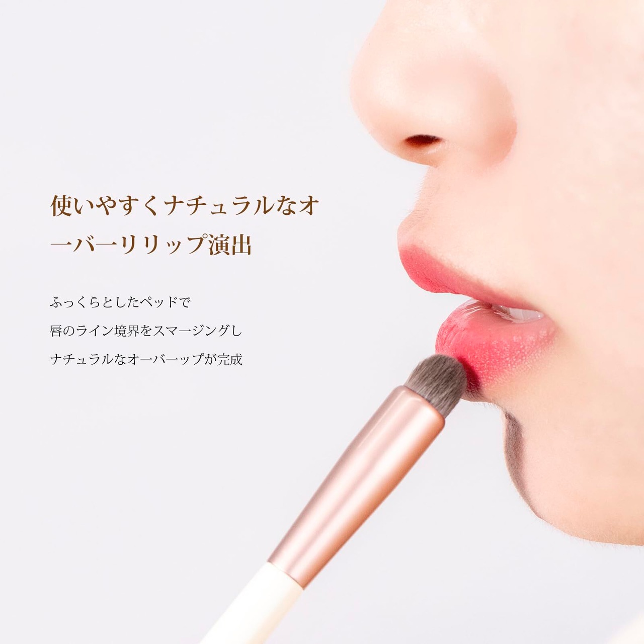 丸みのあるブラシヘッドは、顔との接触面積が広いため、メイクの塗りやすさが向上し、簡単にぼかして柔らかな雰囲気の唇を作ります。