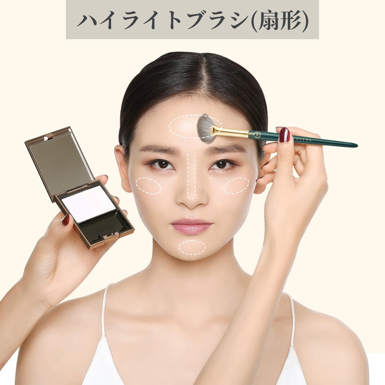 ROWNYEON ハイライトブラシ 扇形 緑姫シリーズ メイクブラシ 超柔らかい 繊維毛 肌に優しい 持ち運びやすい 化粧道具 ブラシ メイク 化粧筆 化粧ブラシ DQ304