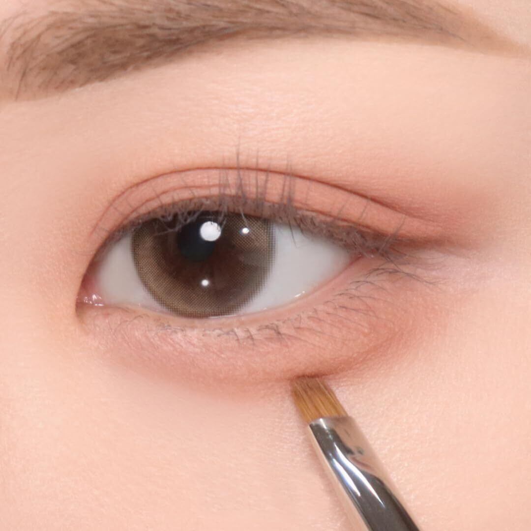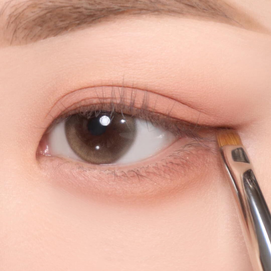 やわらかく小さくフラットな毛先のデザインで細かい部分まで丁寧にタッチ シャドウでアイラインの境界をぼかし、奥ゆかしい雰囲気のある目元を演出 陰影感のあるシャドウカラーで三角ゾーンを埋め、立体感を表現 ●涙袋の陰影を表現可能