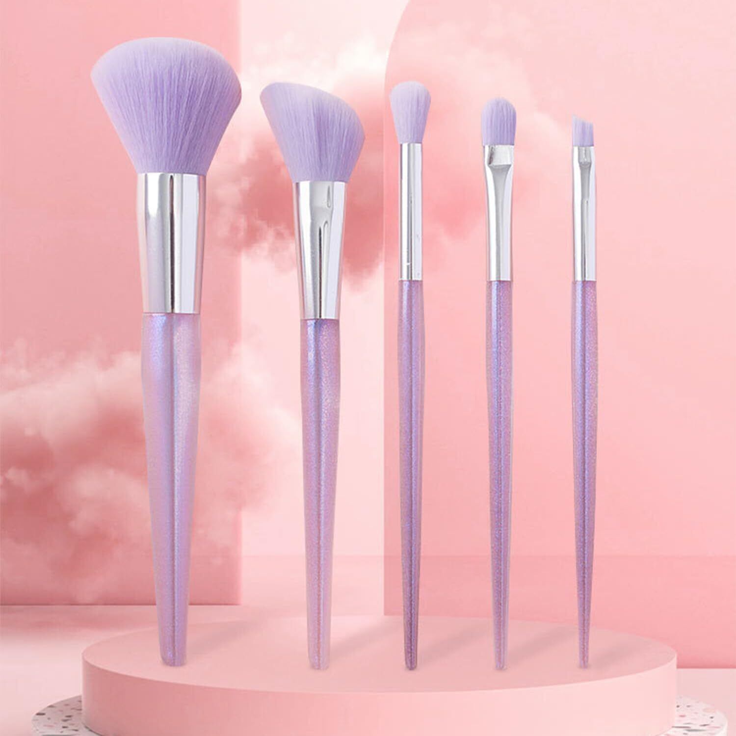 GRTUFOBA メイクブラシ 5本セット 人気メイクブラシ 化粧ブラシセット 高級繊維毛 超柔らかい 化粧ブラシ 粉持ち力強い オーロラ透明なブラシバー メイク道具 日常の化粧 化粧ポーチ付き