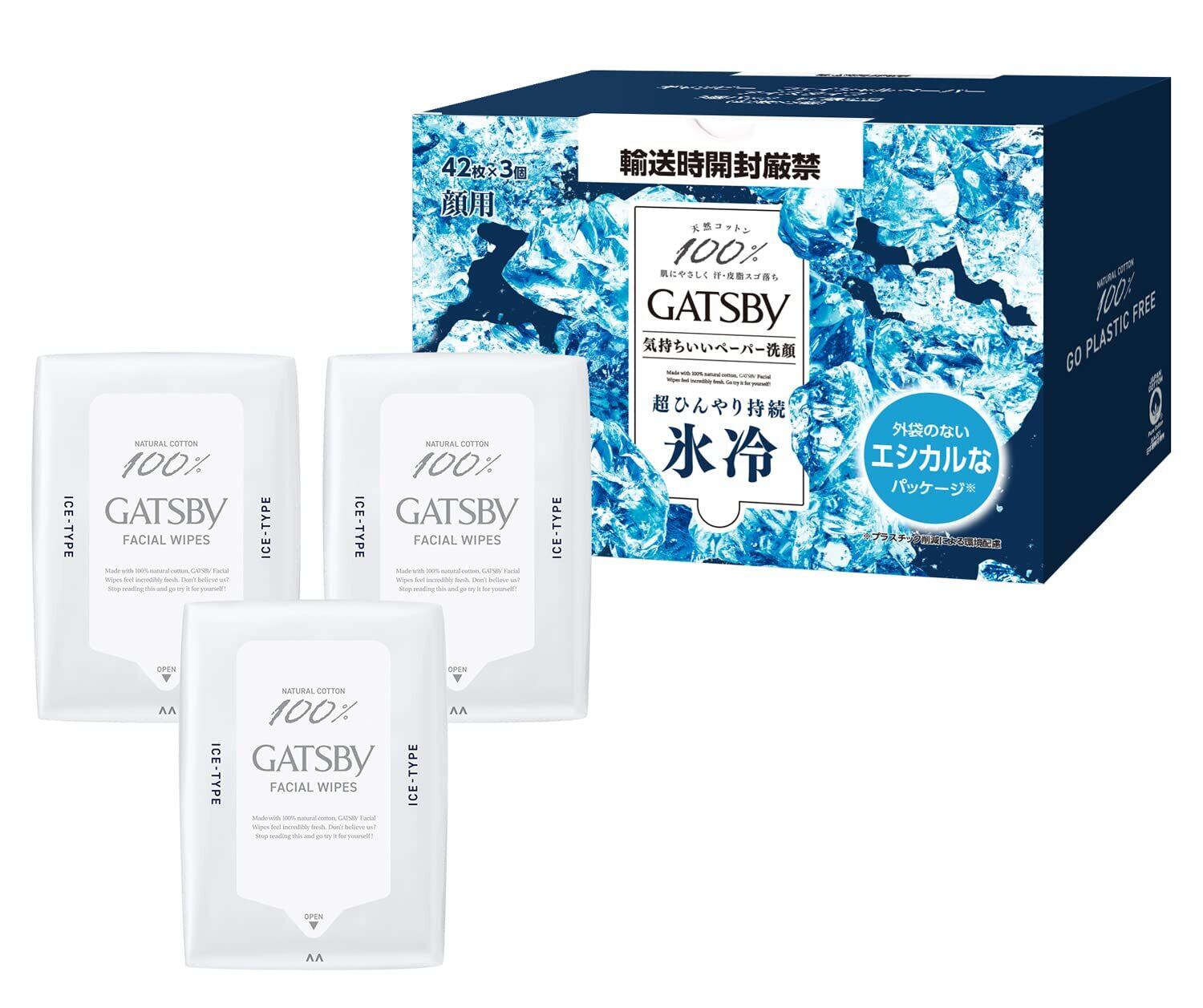 GATSBY(ギャツビー) フェイシャルペーパー アイスタイプ [ 爽快 氷冷 ] メンズ 洗顔シート セット 外装袋レス仕様 42枚×3個