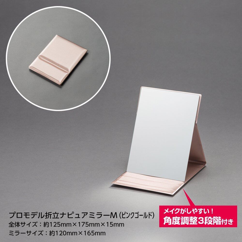 堀内鏡工業 本当の肌色を映すナピュアミラー プロモデル折立ミラー Mサイズ ピンク 化粧鏡 母の日 プレゼント