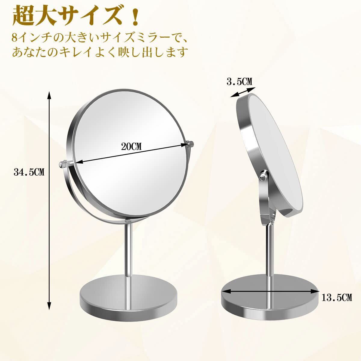 【超大サイズ&クオリティの高さ】材質:鉄、ガラス。化粧鏡は8インチの大きいサイズ、鏡面の直径は20CMで、あなたのキレイよく映し出します。ゆがみが殆どなく酔わず、安価な5倍拡大よりも格段によく見える。長時間鏡を見ていても酔いがありません。シンプルで飽きのこない定番デザインのミラーを、表面は高級感な銀色の輝きを放ちつつ、シンプルなデサインなので、どんな場所に置いても、お部屋を素敵に演出してくれます。