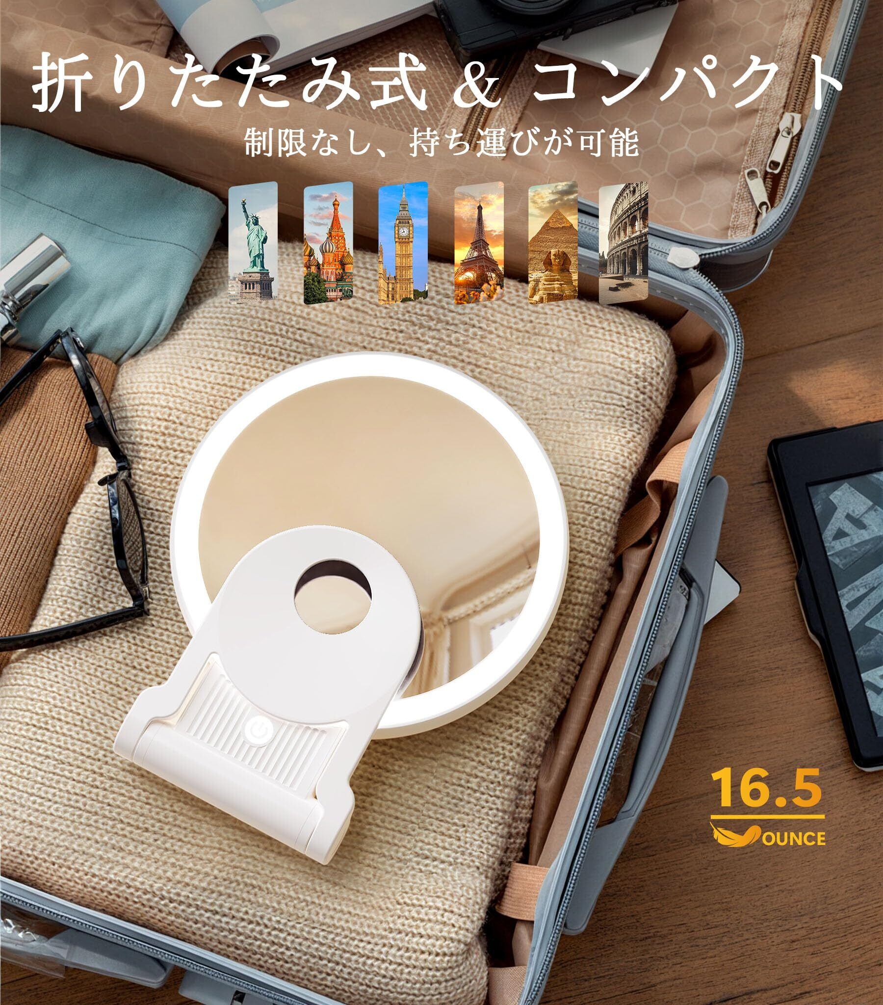 【高速充電・携帯便利】Type-c充電式でバッテリー容量は2000mAhもあり、わずか3時間の充電で14時間の使用が可能で、日常生活に最適です。USBケーブルが付属しており、モバイルバッテリーやコンセントによって化粧鏡を充電します。また、女優ミラーのサイズは約W2.6*L19*H24cm(折り畳み時)で、重さは約469gです。コンパクトなデザインで、卓上に使えることだけでなく、旅行や外出時に持ち運びことも便利です。