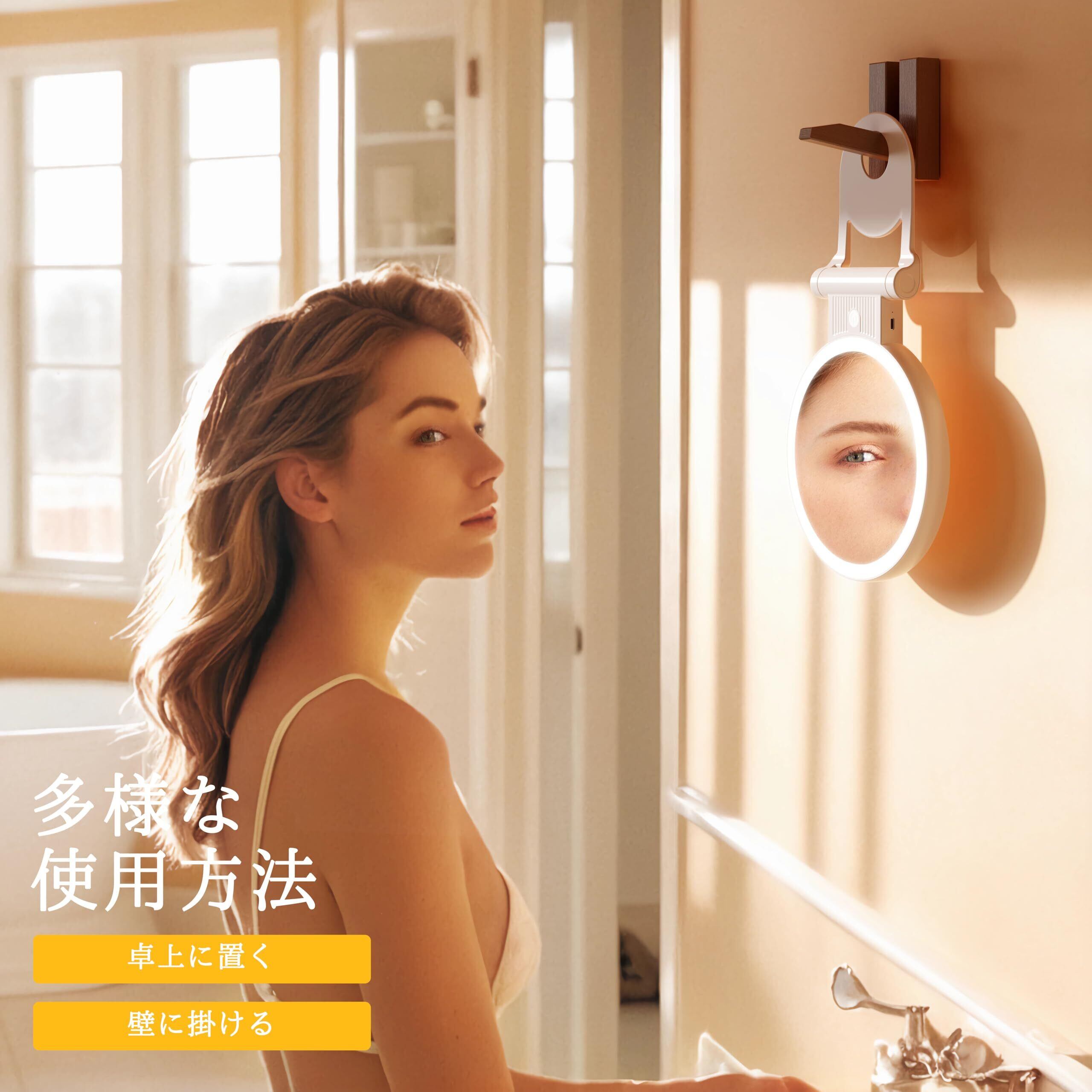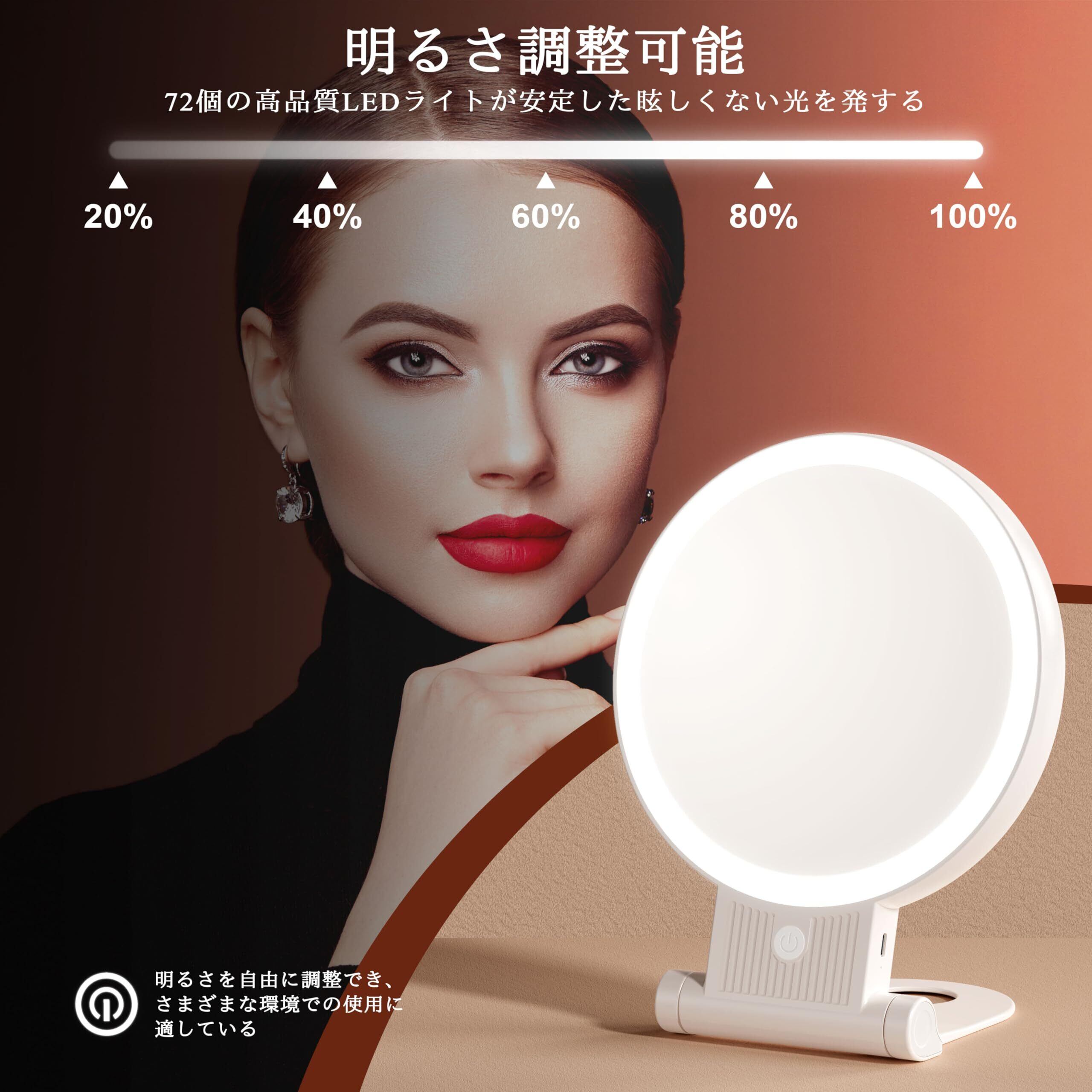 Auxmir 女優ミラー 鏡 卓上 拡大鏡 30倍と等倍 72個LEDライト付き 3光色 折り畳み式 手鏡 明るさ無段階調光 角度調整可能 USB充電式 2000mAh大容量バッテリー 化粧鏡 スタンド&ハンドミラー 卓上/吊り下げ/手持ち可能 ハンドル付き コンパクト 旅行用 持ち運び便利 円形 ホワイト