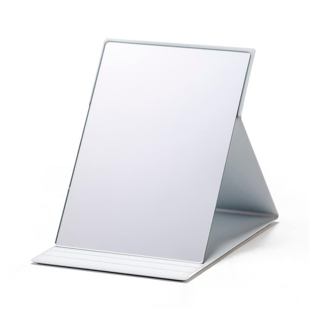 【メイクアップアーチストが愛用】プロモデル折立ミラーは美容部員やメイクアップアーチストが愛用する持ち運びができるスリムな折りたたみタイプのミラーです。映る範囲を最大にしたフレームレス設計、ミラーに無駄なフレームを無くすことで商品サイズに対して最大の有効ミラーサイズを実現。とにかく広くて見やすいので快適にメイクが出来ます。鏡の側面はひとつひとつ丁寧に研磨加工をしています。使い終わればコンパクトに収納が出来て持ち運びに便利です。