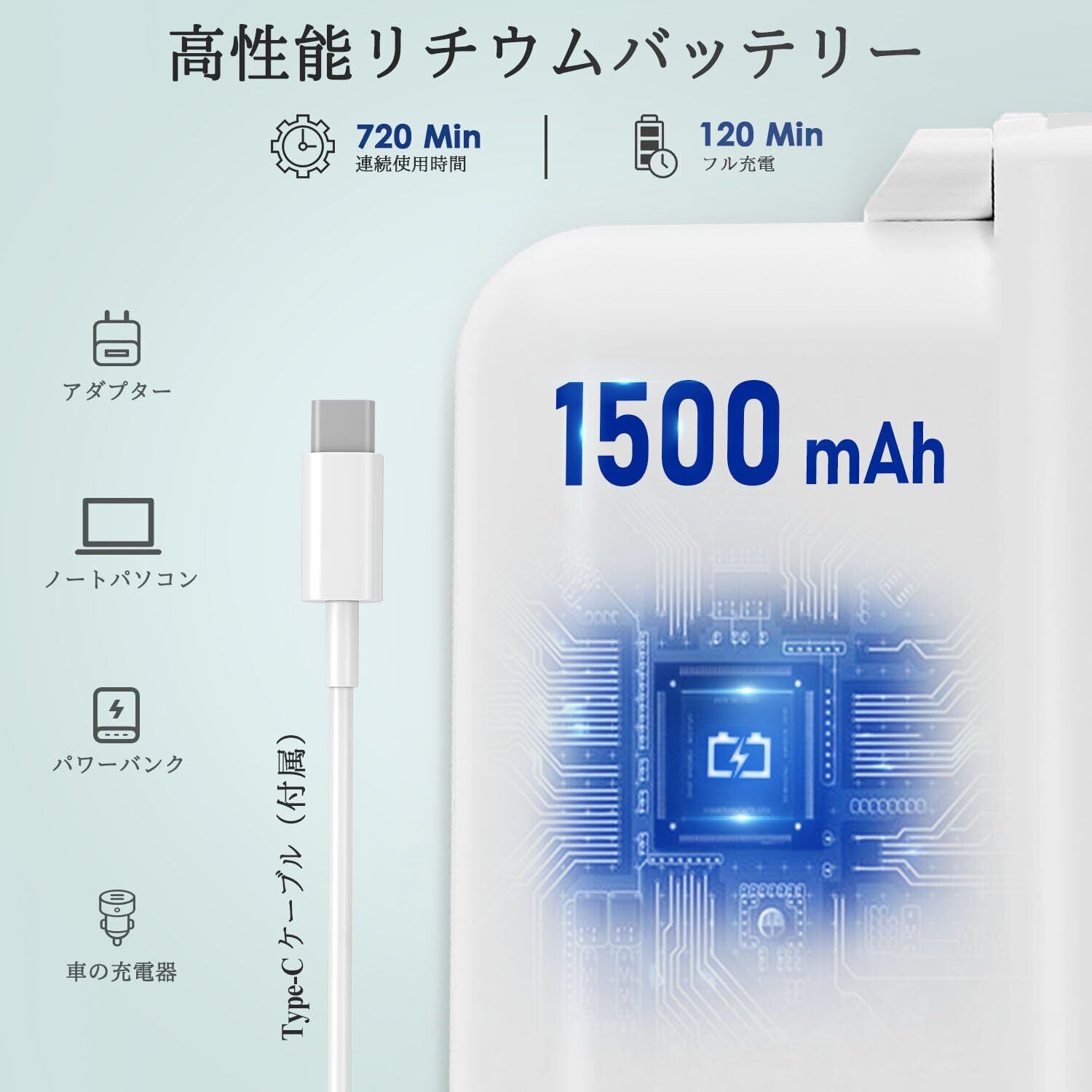 【高速充電・携帯便利】Type-c充電式でバッテリー容量は1500mAhもあり、わずか2 ~ 3時間の充電で7-8時間の使用が可能で、日常生活に最適です。USBケーブルが付属しており、モバイルバッテリーやコンセントによって化粧鏡を充電します。また、化粧鏡のサイズは約21ⅹ15.5ⅹ0.6cmで、重さは約381gです。コンパクトなデザインで、卓上に使えることだけでなく、旅行や外出時に持ち運びことも便利です。