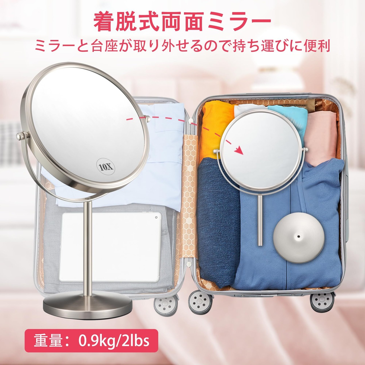 【取り外し可能設計&取り付け容易】柱の両端は取り外し可能な設計で、ネジを回して拡大鏡と台座をすぐに取り付けたり取り外したりするだけです。インストールが容易で、破損しにくい。仕事や旅行に出かけても、ポーチやスーツケースに上手に収納できます。パッケージにはわかりやすい日本語の取り付け説明が付いており、道具を一切必要とせず、数分でスタンドミラーの取り付けと取り外しを完了することができます。