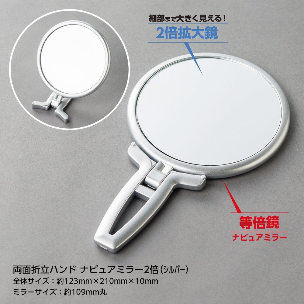 ナピュアミラー 細部が大きく見える 両面ハンドミラー 2倍拡大鏡 シルバー 化粧鏡 手鏡 母の日 敬老の日 プレゼント