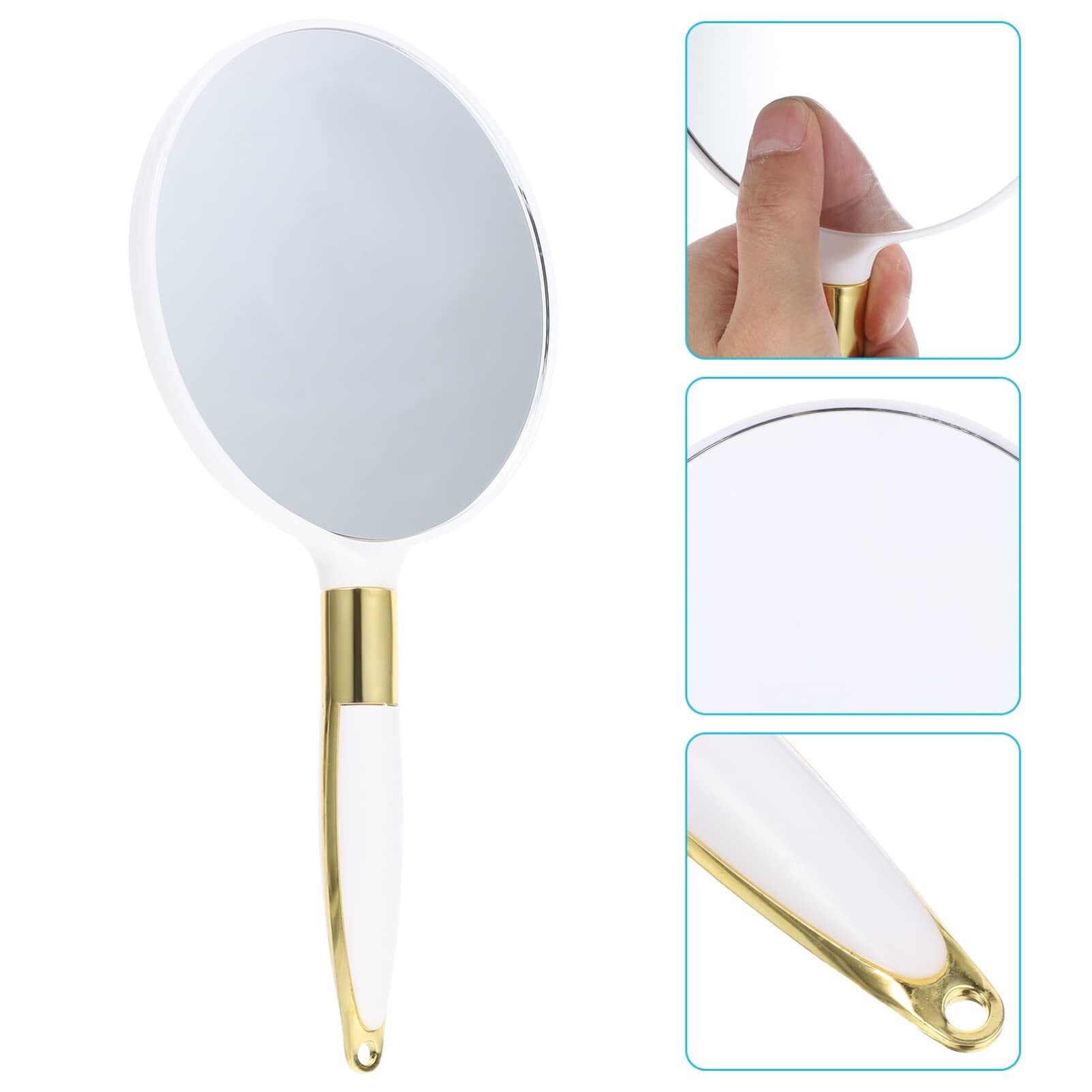 LALAFINA 手鏡 大きめ ハンドヘルドメイクアップミラー おしゃれ ハンドミラー 化粧鏡 携帯ミラー メイクミラー 女優ミラー 美容院ミラー サロン 理髪店 自宅用 鏡ミラー 女の子 ホワイト