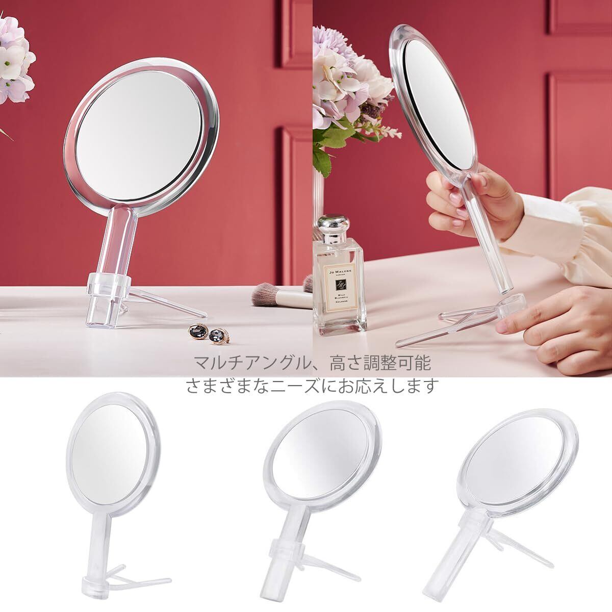 MILEDUO 手鏡 鏡 化粧鏡 両面メイクミラー 等倍と10倍拡大鏡 ハンドル付き両面鏡 卓上手鏡 スタンドミラー 円形化粧鏡 16CM クリア