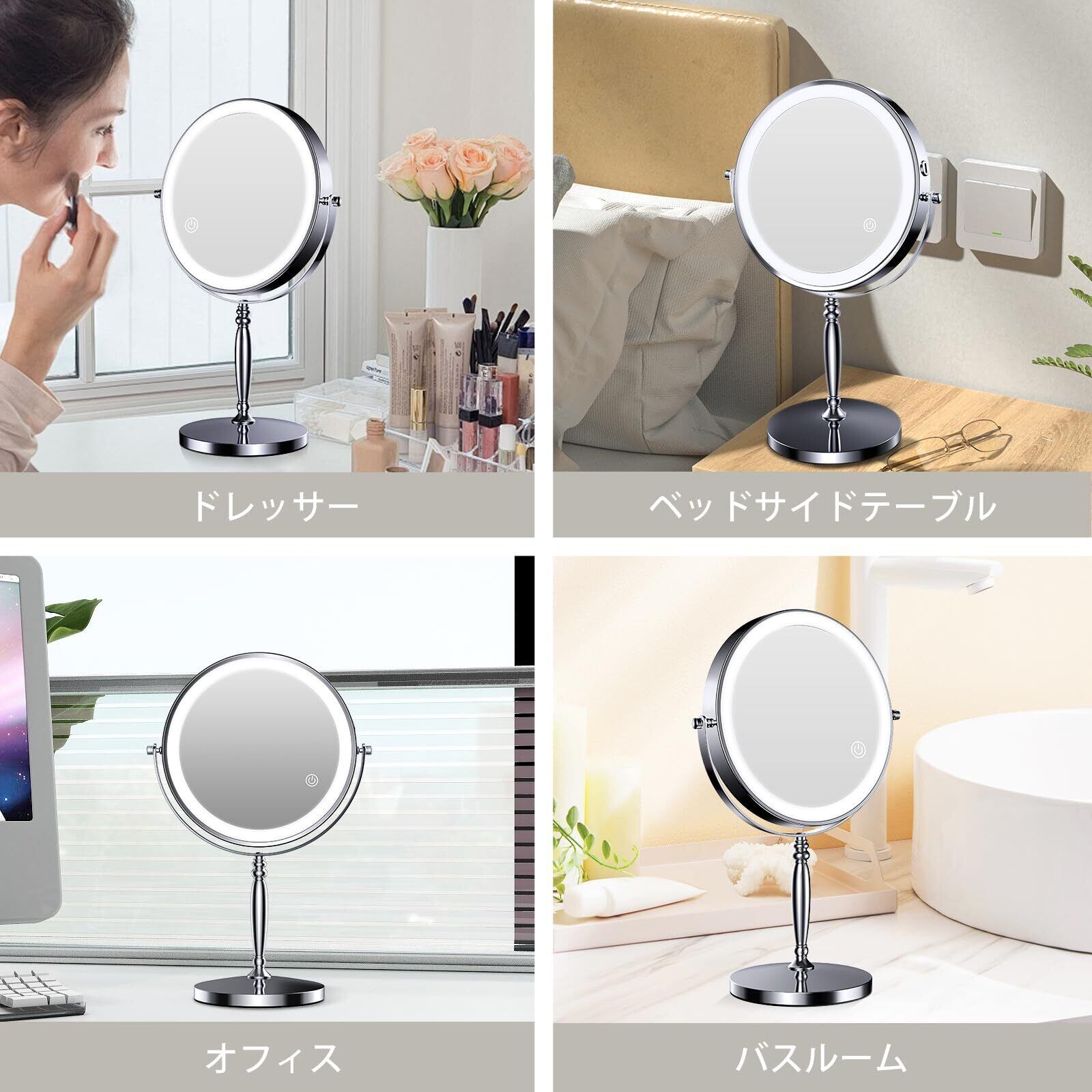 MILPROX 女優ミラー 拡大鏡 ライト付き スタンドミラー 鏡 卓上 化粧鏡 1倍10倍拡大鏡 8インチ USB充電式2000mAh大容量 寒暖自然色調節 明るさ調節 メイク メモリー 消し忘れ防止 タッチ式 360°回転