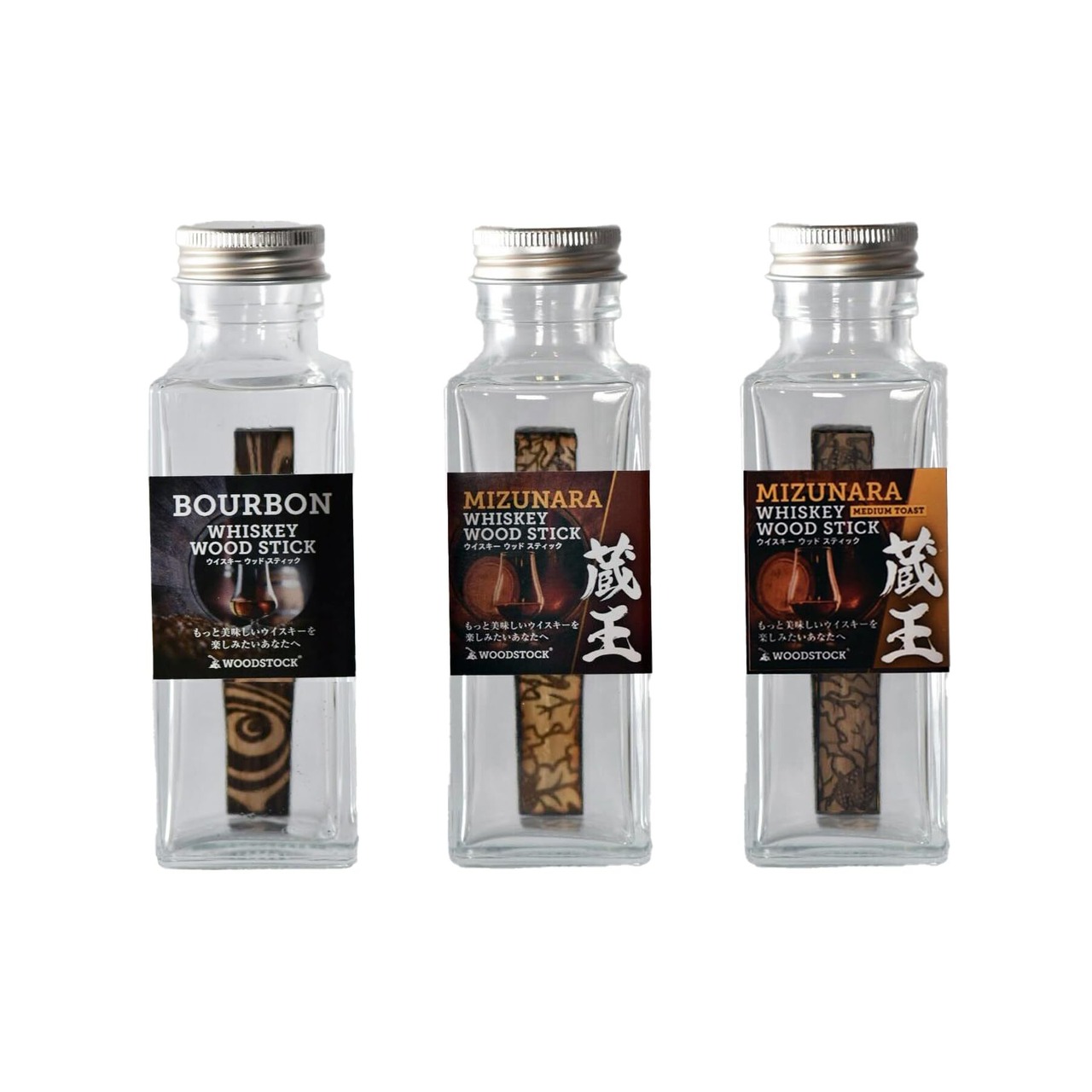 熟成キット mini 3種セット ウイスキーウッドスティック ミズナラ 蔵王産 ホワイトオーク バーボン ボトル付き ガラス瓶 100ml ギフト いつものお酒を入れるだけ