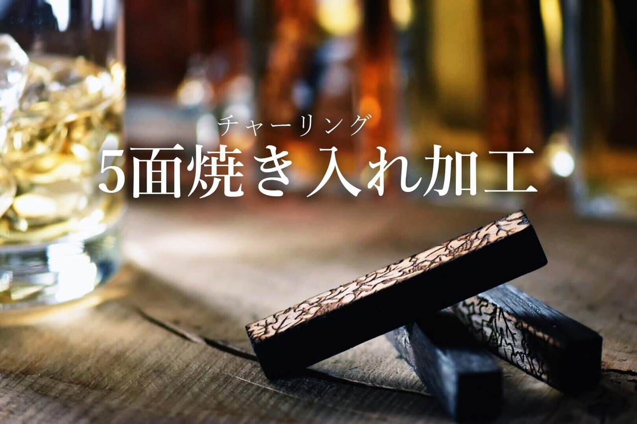短期熟成を促すチャーリング: スティックを焦がすことで、樽の内側を焦がして原酒を浸透しやすくすし、ミズナラの香味成分を引き出す「チャーリング」も忠実に再現