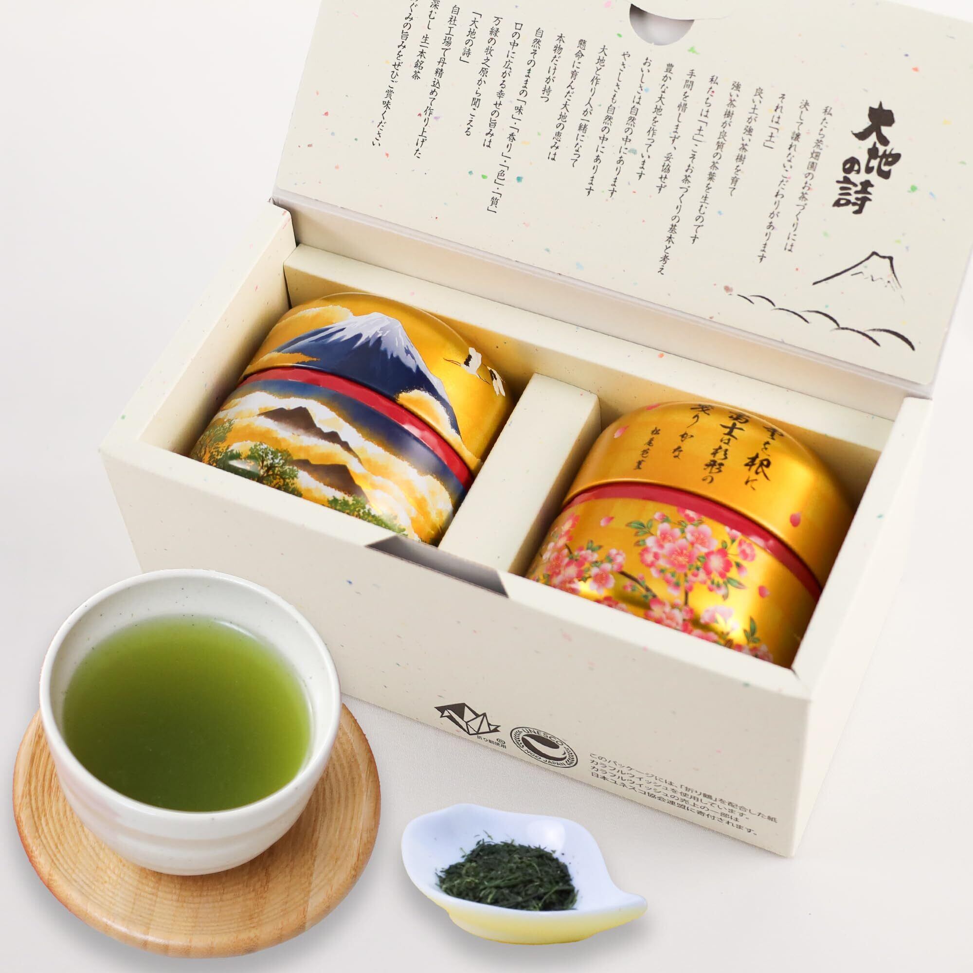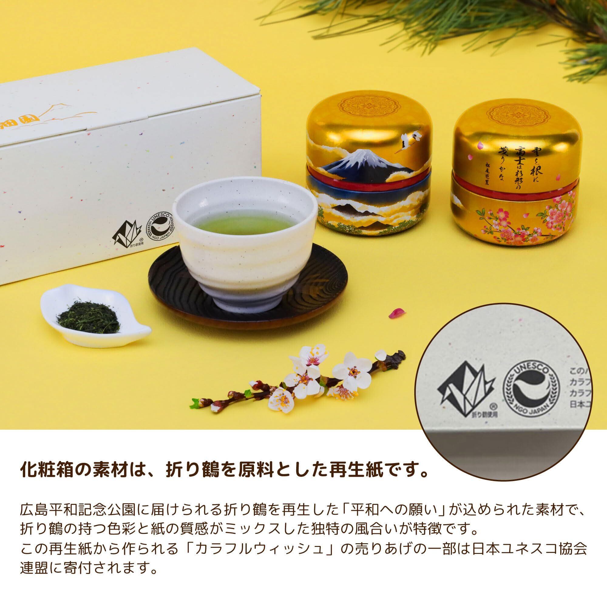 荒畑園 日本茶 ギフト 富士黄金缶 70g×2本 箱入 なつめ缶 高級茶 ギフトセット 静岡県産 緑茶 深蒸し茶 茶葉 贈答 プレゼント 牧之原茶 富士山 縁起物