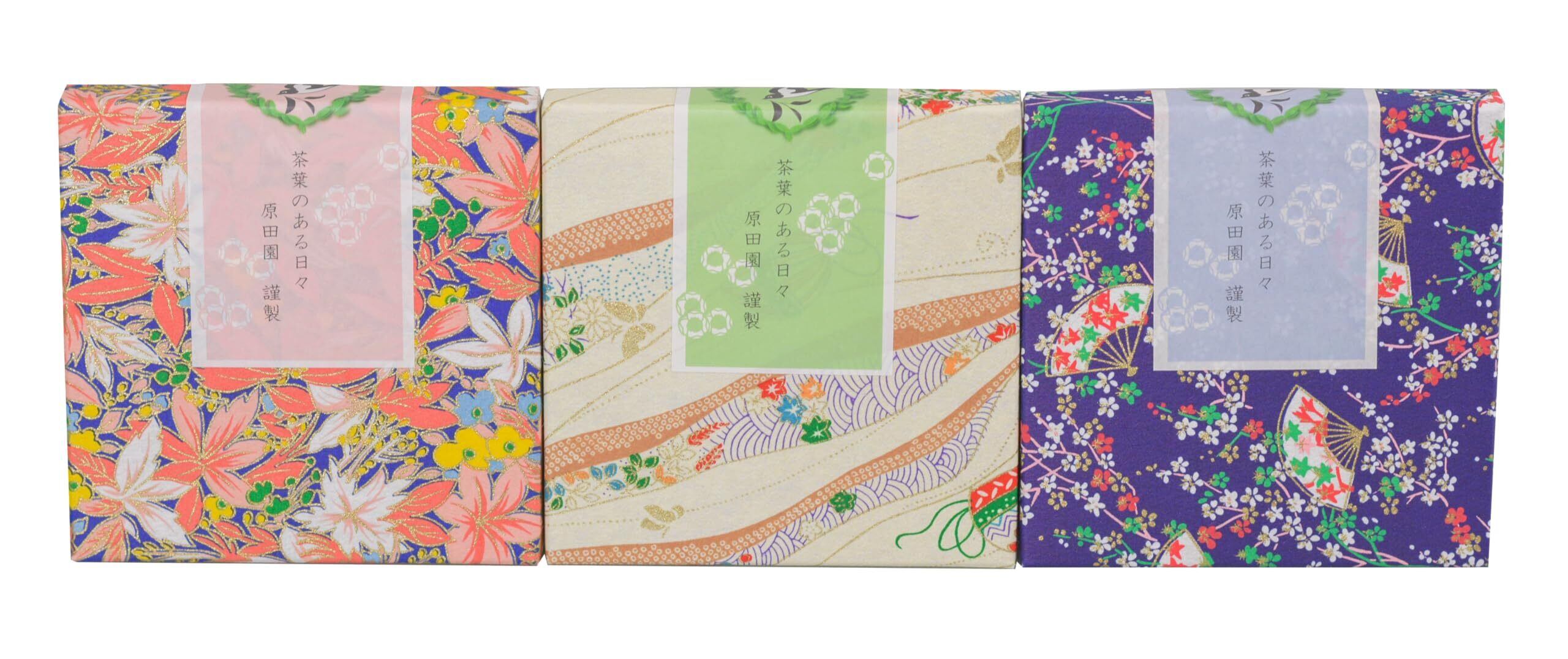 原田園 プチギフト 静岡茶 日本茶アソート ティーバッグ 2g×5個入り キレイな おしゃれな 和風柄 日本 外国人が喜ぶ日本のお土産 3箱セット (緑茶、玄米茶、焙じ茶) ご挨拶 退職 引越し お世話になりました プレゼント ありがとう お返し お礼