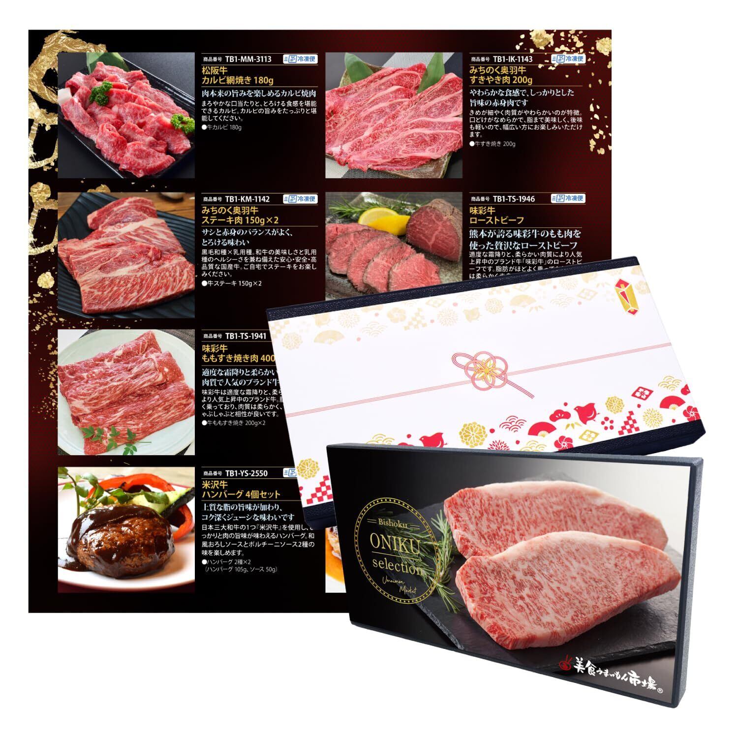 カタログギフト お取り寄せ グルメ ギフト プレゼント お肉 選べる 特選 牛肉 (松阪牛 米沢牛 国産牛 黒毛和牛 美食撰華 椿 のしボックス) 美食うまいもん市場