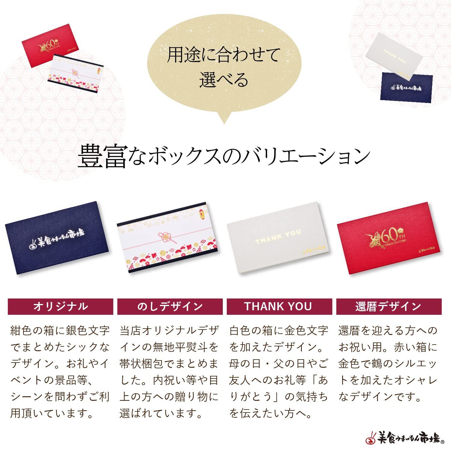 ▼お祝 や お返し 引き出物 や 誕生日 などの プレゼント お世話になった方への お礼 や お中元 お年賀 などに最適です。