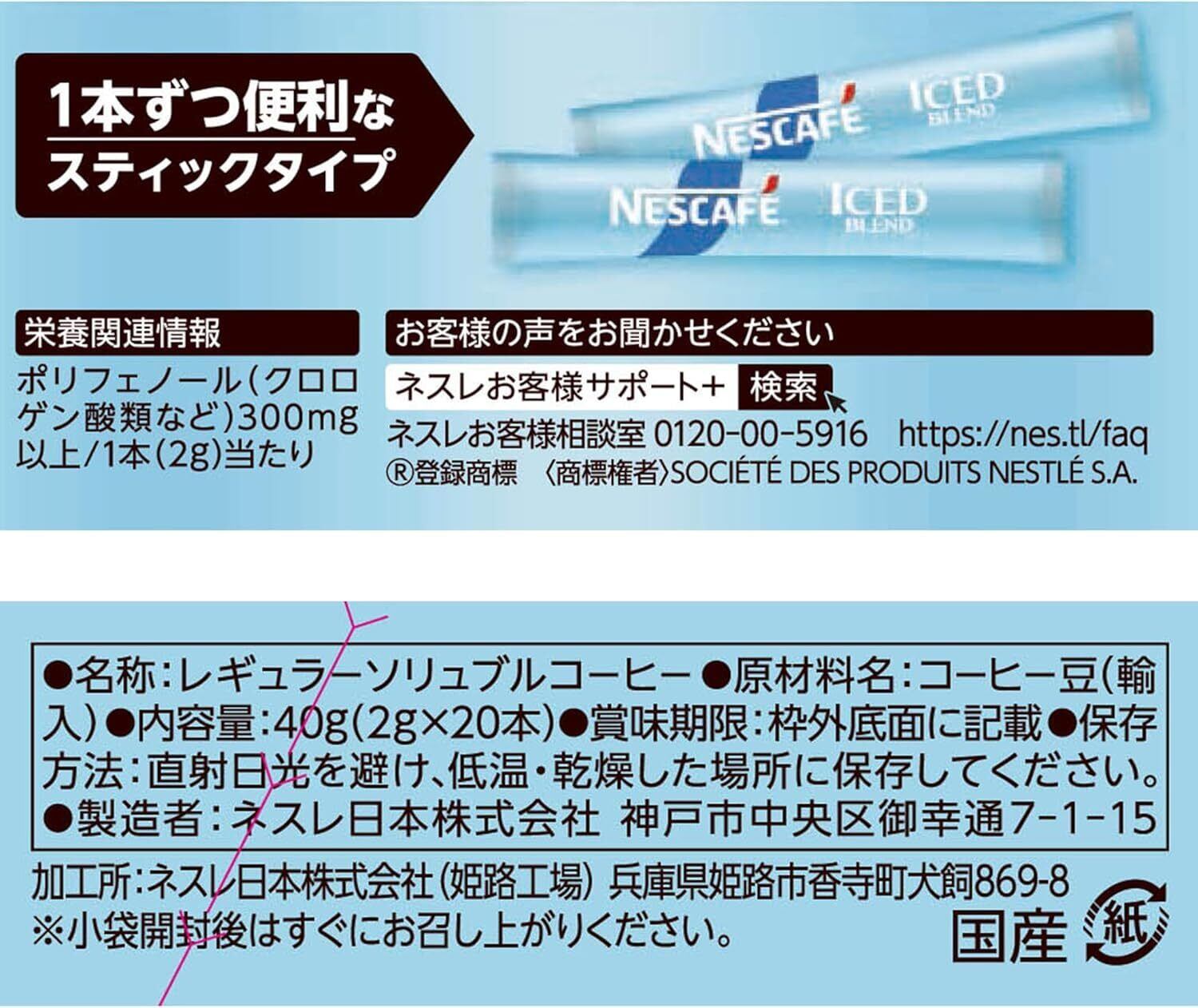 ネスカフェ アイスブレンド スティック ブラック 20P,箱,レギュラー ソリュブル コーヒー,個包装