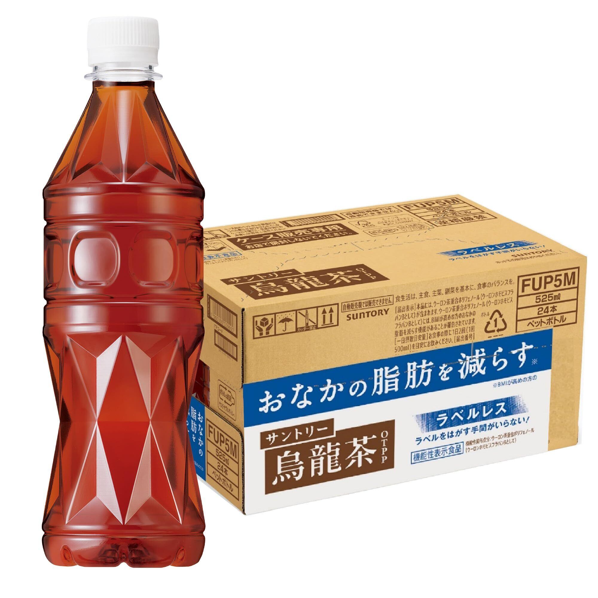 サントリー 機能性表示食品 烏龍茶OTPP ラベルレス(ケース販売用) 525ml×24本は、おいしく、おなかの脂肪を減らす「美味、健康」茶。サントリーの長年の烏龍茶製造で培ったノウハウで茶葉の焙煎香をコントロールすることで、烏龍茶らしい、味わい深いコクを愉しみながらも、効能感を感じられます。烏龍茶ならではのコクとキレのある味わいをスタイリッシュに表現したオリジナルボトルで「ラベルをはがす手間がいらない!」ラベルレス商品です。