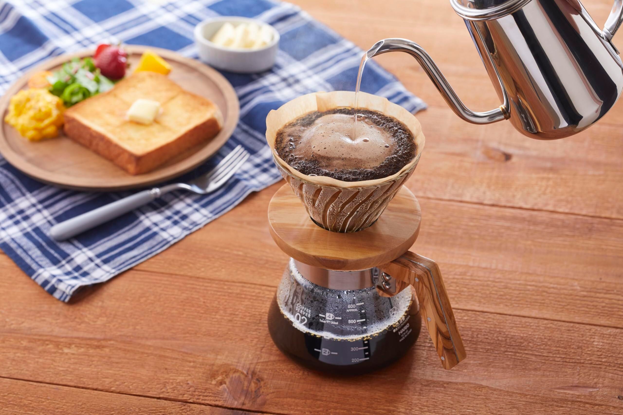 コーヒードリッパーとペーパーフィルターを使用し、コーヒーサーバーや直接コーヒーカップに乗せて、コーヒーメジャーなどで容量を計ってドリップコーヒーをお楽しみください。