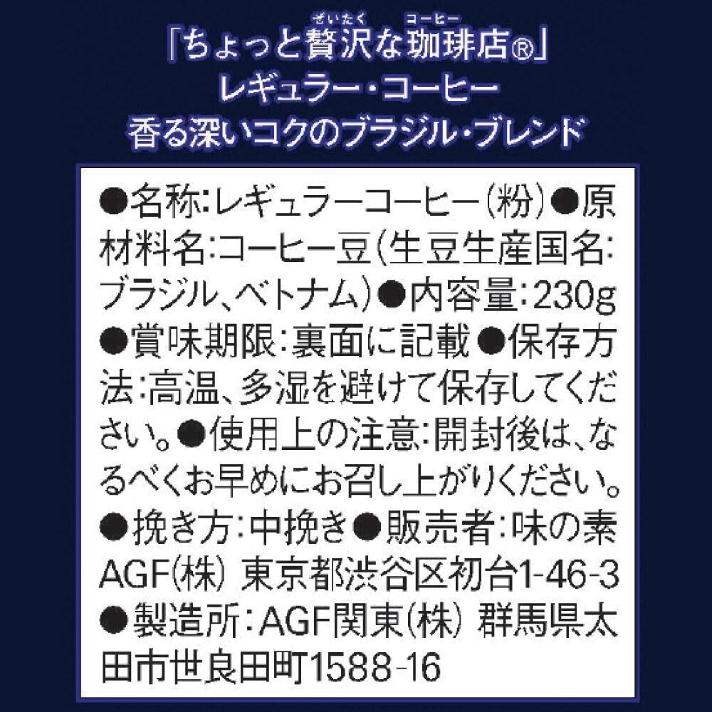 AGF ちょっと贅沢な珈琲店 レギュラーコーヒー 香る深いコクのブラジルブレンド 230g 【 コーヒー 粉 】