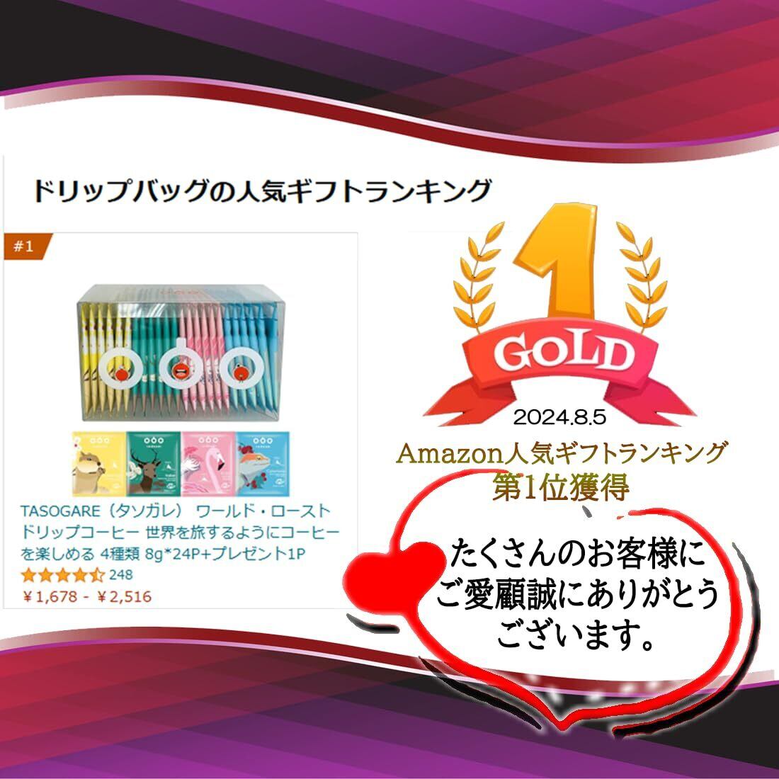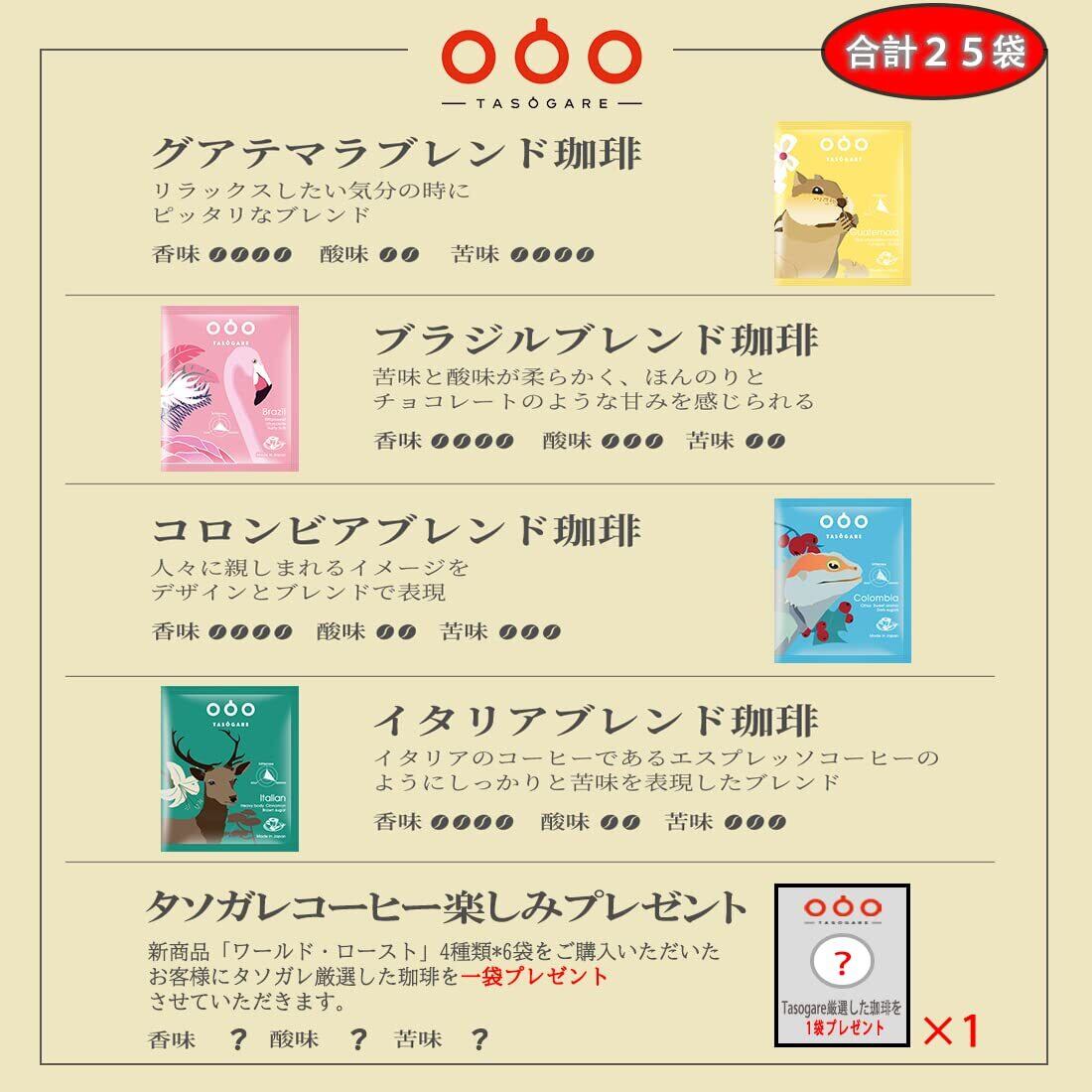 TASOGARE(タソガレ) ワールド・ロースト ドリップコーヒー 世界を旅するようにコーヒーを楽しめる 4種類 8g*24P+プレゼント1P
