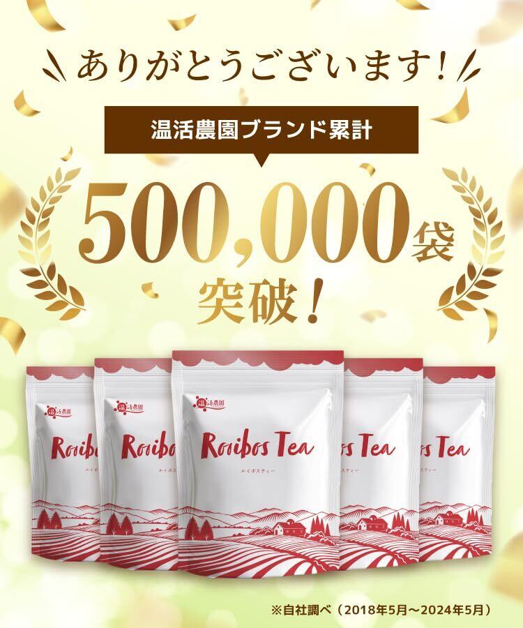 【500,000人以上のお客様から選ばれ続けています】私たちの健康茶は、素材選びから製造まで徹底したこだわりをもって作られています。その結果、多くの方に支持され、累計販売数が500,000袋を突破しました!