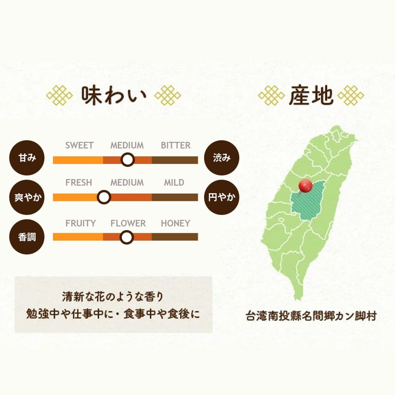 台湾中部・凍頂山一帯、南投縣名間郷にある岳さんの茶園で採取された烏龍茶で、ほのかな香りとしっかりした味が特徴です。しっかりと揉捻を繰り返していますので、今までの烏龍茶とは味と香りが違います。高級料理店などの業務用としても広く使用されており、高品質・低価格で人気の茶葉です。