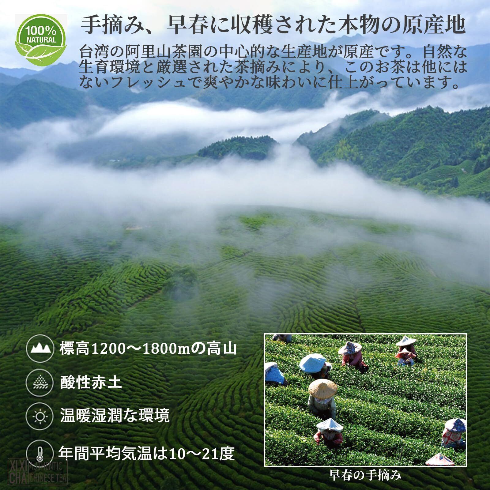 XIXICHA 台湾茶 烏龍茶 特級台湾阿里山乌龙茶150g 阿里山烏龍茶 凍頂烏龍茶 手摘みの茶葉 ウーロン茶 金萱茶 高山乌龙茶 中国茶叶 お茶の葉 無添加 健康茶 無農薬栽培 高山茶