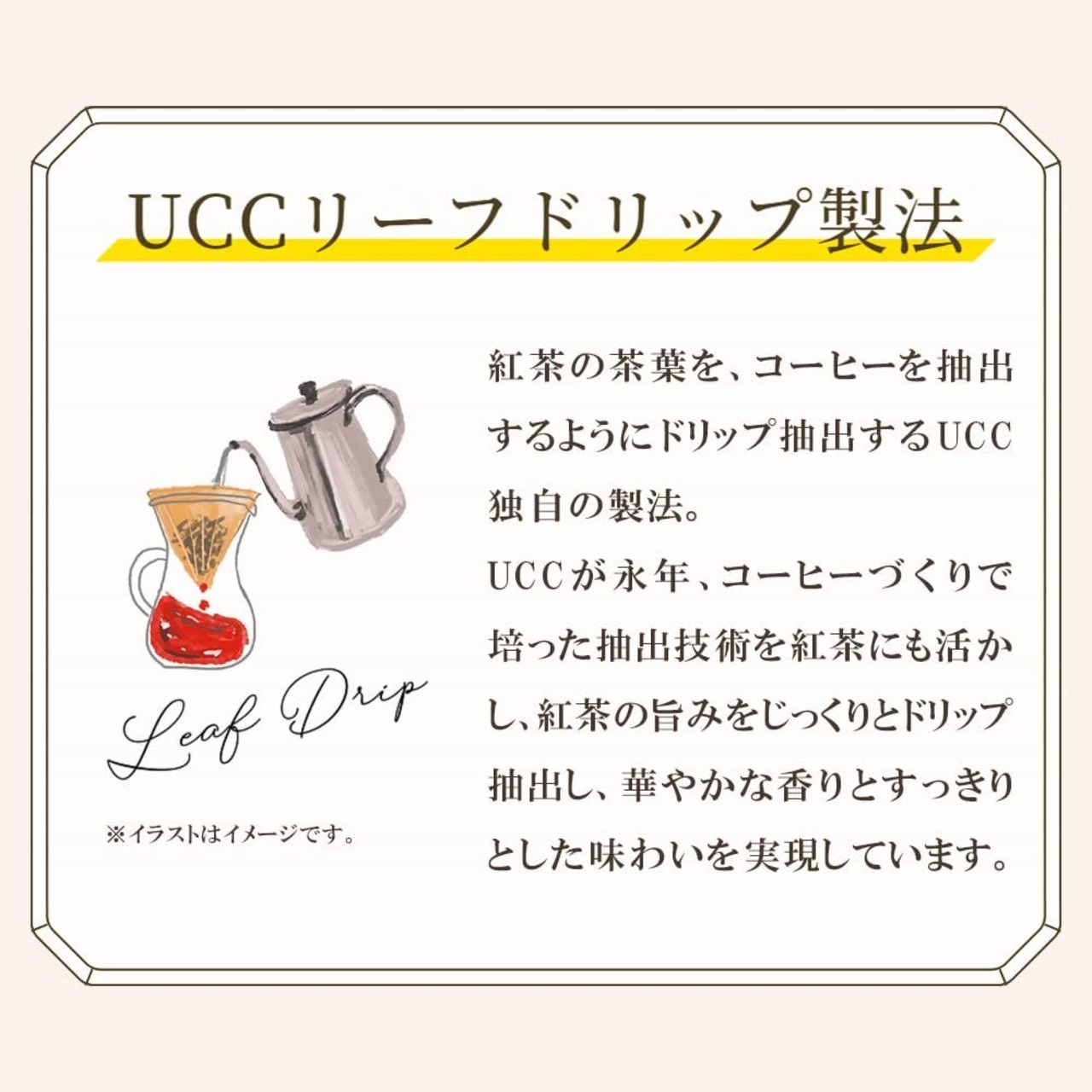 日常をちょっと変えるティータイム。芳醇で爽やかな味わいの本格無糖ストレートティー。◆コーヒーにこだわり続けてきたUCCが、コーヒーで培ったノウハウを活かして作り上げた、無糖タイプのストレートティー。・リーフドリップ製法・紅茶の時間 「Produced by UCC」◆厳選茶葉のオリジナルブレンド(アッサム80%使用) 飲用時の紅茶感をUPさせつつ、後味のすっきり感を実現。◆パッケージ上部に透明マットを施し、すっきり感の醸成と茶葉をデザインすることで本格的な味わいを表現。上下を波線にすることで、お洒落さUPとシズル感を表現。◆利便性の向上(持ちやすく、注ぎやすい)と環境対応(積載効率UP)を実現した、UCC独自の新ボトル採用。