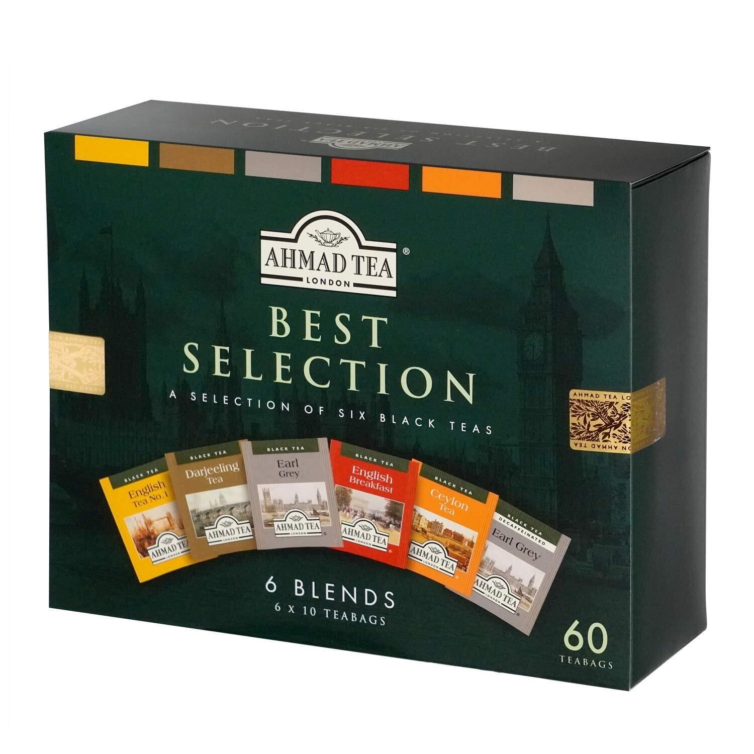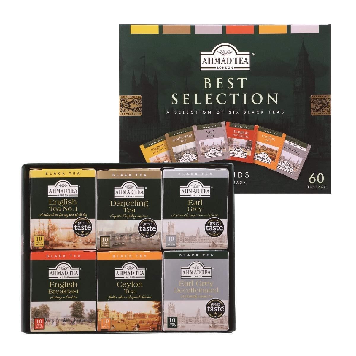 Ahmad Tea (アーマッドティー) ザ・ベスト・セレクション ティーバッグ 60袋 [アールグレイ, デカフェアールグレイ, イングリッシュティーNo.1, イングリッシュブレックファースト, セイロン, ダージリン 各10袋] 120g