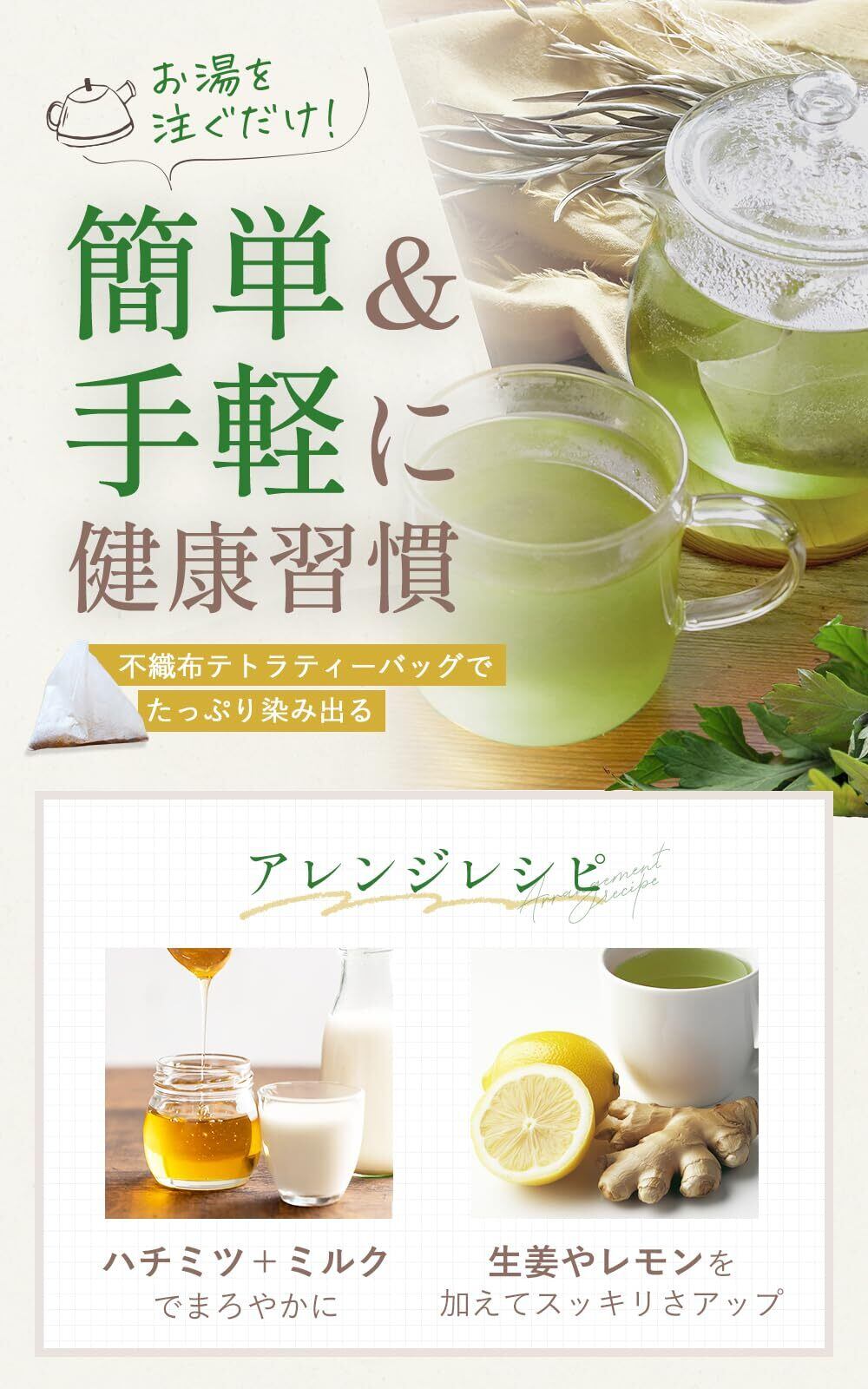 【簡単に飲める】ティーバッグなので簡単に飲めます。また、しっかりお茶を抽出できるようテトラティーバッグを採用しています。お湯を入れた瞬間にたっぷり染み出てきます。