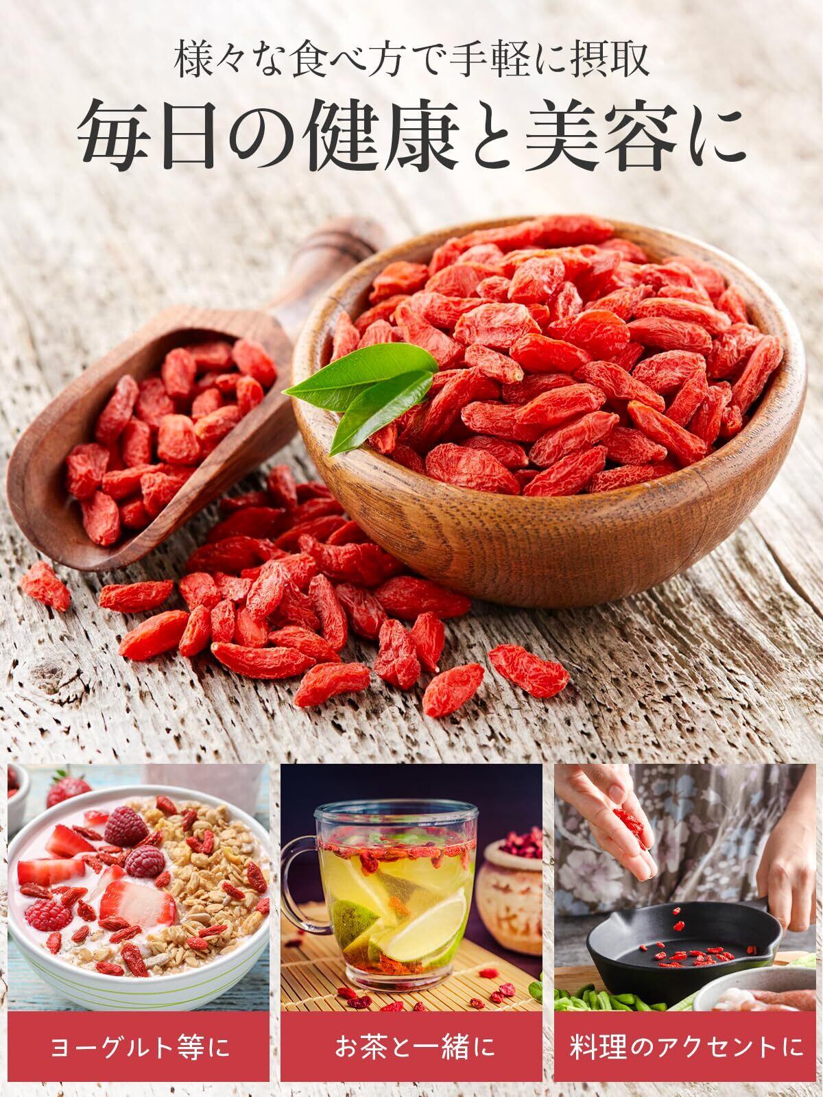 【お召し上がり方】有機クコの実は、さまざまな方法でお召し上がりいただけます。(1)スムージーやヨーグルトに加える: クコの実は、スムージーやヨーグルトにトッピングとして加えることで、食感や風味を楽しむことができます。(2)お茶と一緒に利用する: クコの実は、お茶との相性が非常に良い。そのままお湯に入れても美味しい。(3)料理に使う: クコの実は、さまざまな料理に利用することができます。サラダやパン、デザートなどにトッピングとして加えることで、食材の風味や食感を引き立てます。