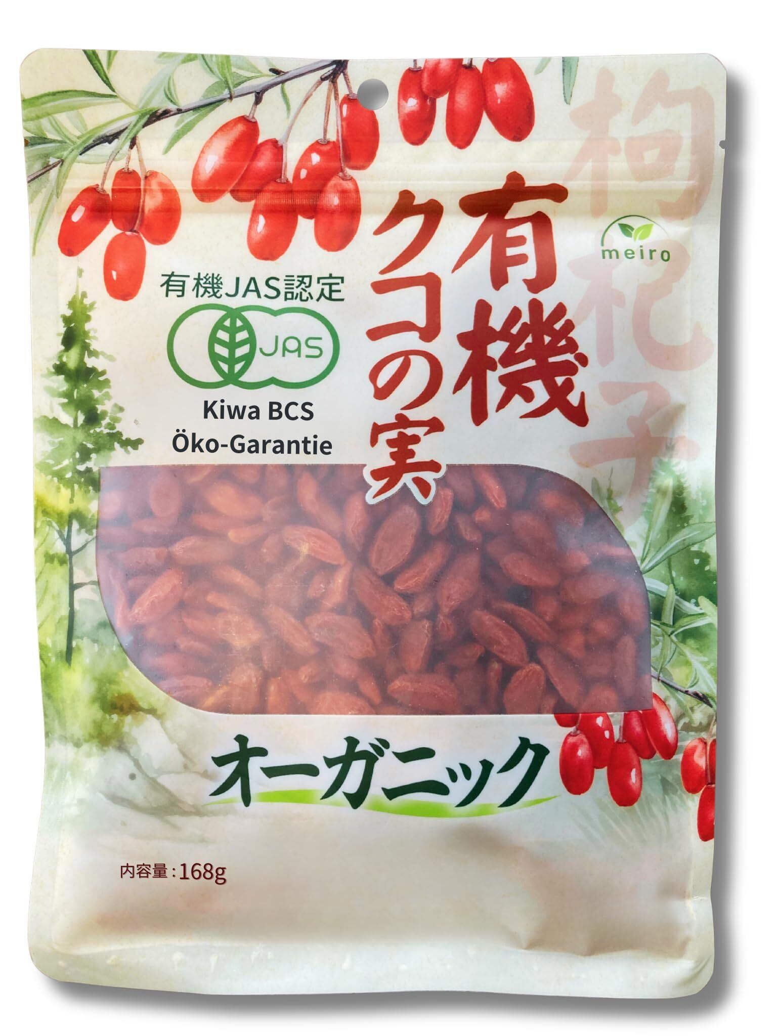 meiro 有機クコの実 168g 日本有機認証JAS取得 オーガニック 長さ20mm 無農薬 無添加 100%有機栽培 枸杞の実 ゴジベリー ゼアキサンチン ビタミン くこ なつめ茶 漢方 薬膳食材 くこのみ