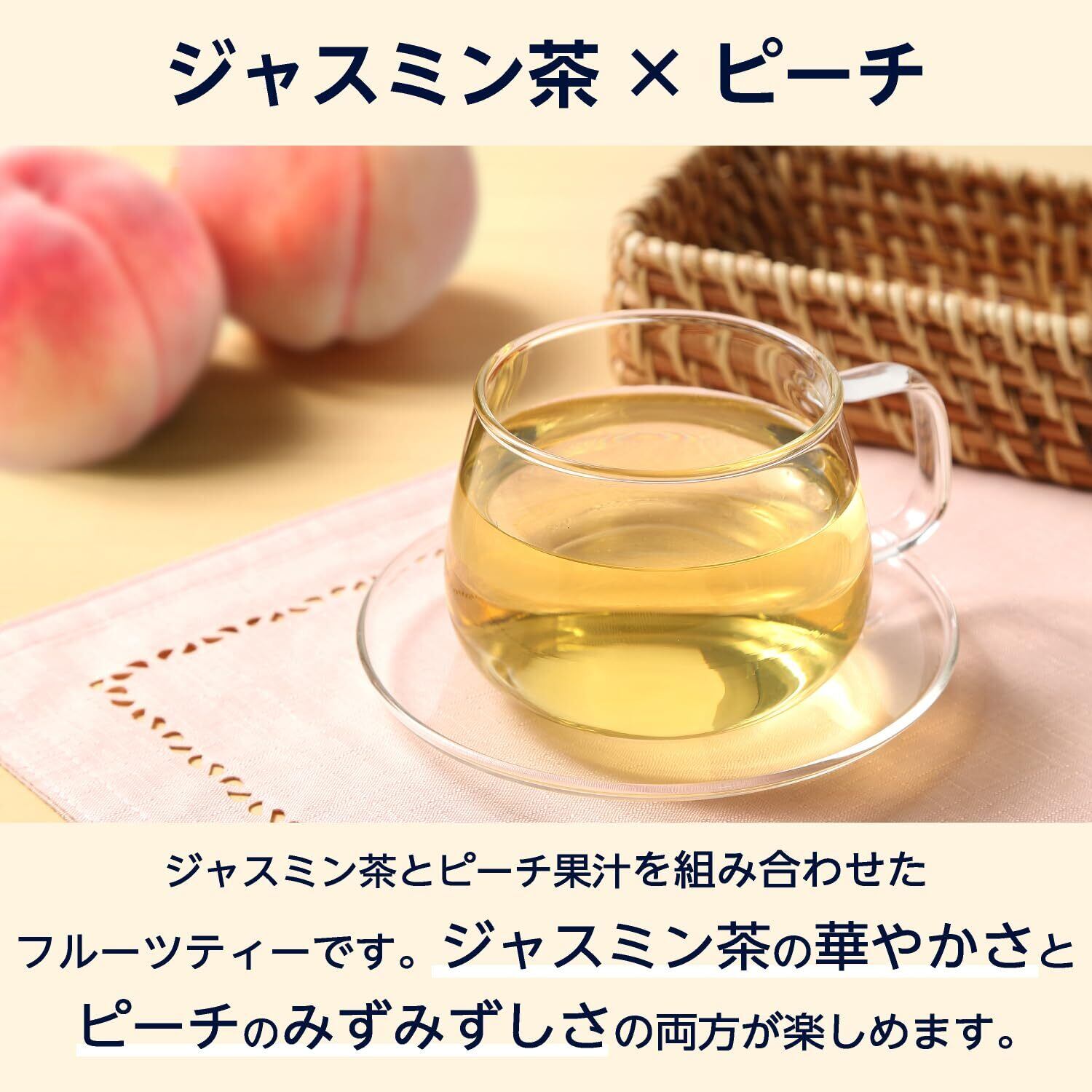 ジャスミン茶とピーチ果汁が織りなす、ほのかな甘みとすっきりとした味わいが特徴のフルーツティーです。