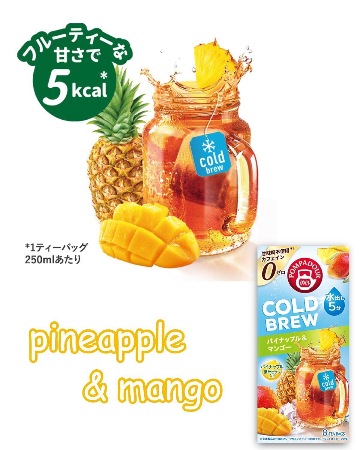 ポンパドール 水出しアイスティー コールドブリュー (8TB入り)×4種(ストロベリー&オレンジ、ピーチ&パッションフルーツ、ベリーモヒート、パイナップル&マンゴー)+オリジナルハーブティーお試し付 旧クールセンセーション