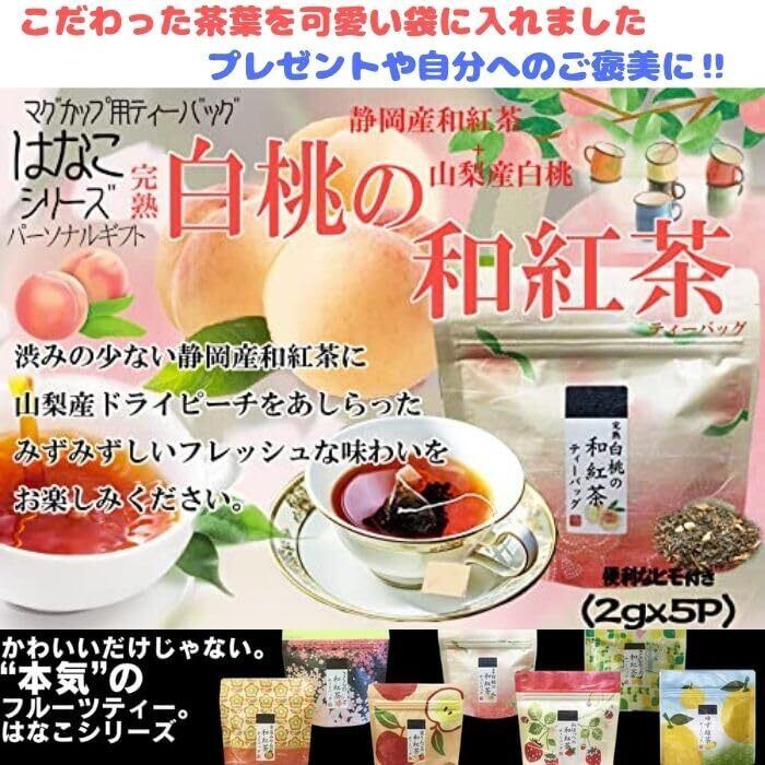 【白桃の和紅茶ティーバッグ2g×5p】 原材料名、紅茶(静岡県産)乾燥白桃(山梨県産)/香料 「渋みの少ない静岡県産和紅茶に山梨産の甘みたっぷり乾燥白桃をあしらったみずみずしい和紅茶」