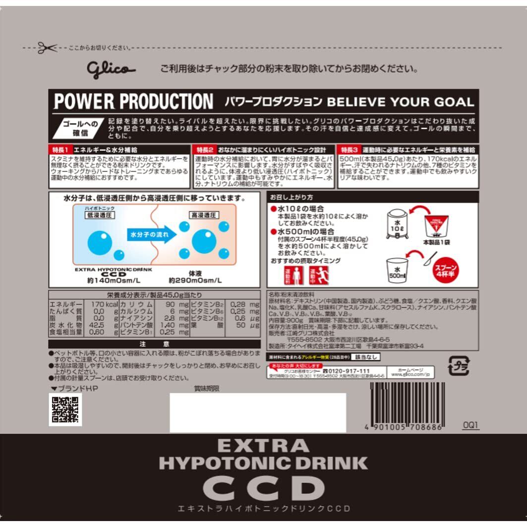 【公式】グリコ パワープロダクション エキストラ ハイポトニックドリンク CCD グリコボックス入り 2,250ℊ (大袋10ℓ用 900ℊ 2袋 & 500㎖用 45ℊ 10袋) ドリンク パウダー 熱中症対策 ⑦