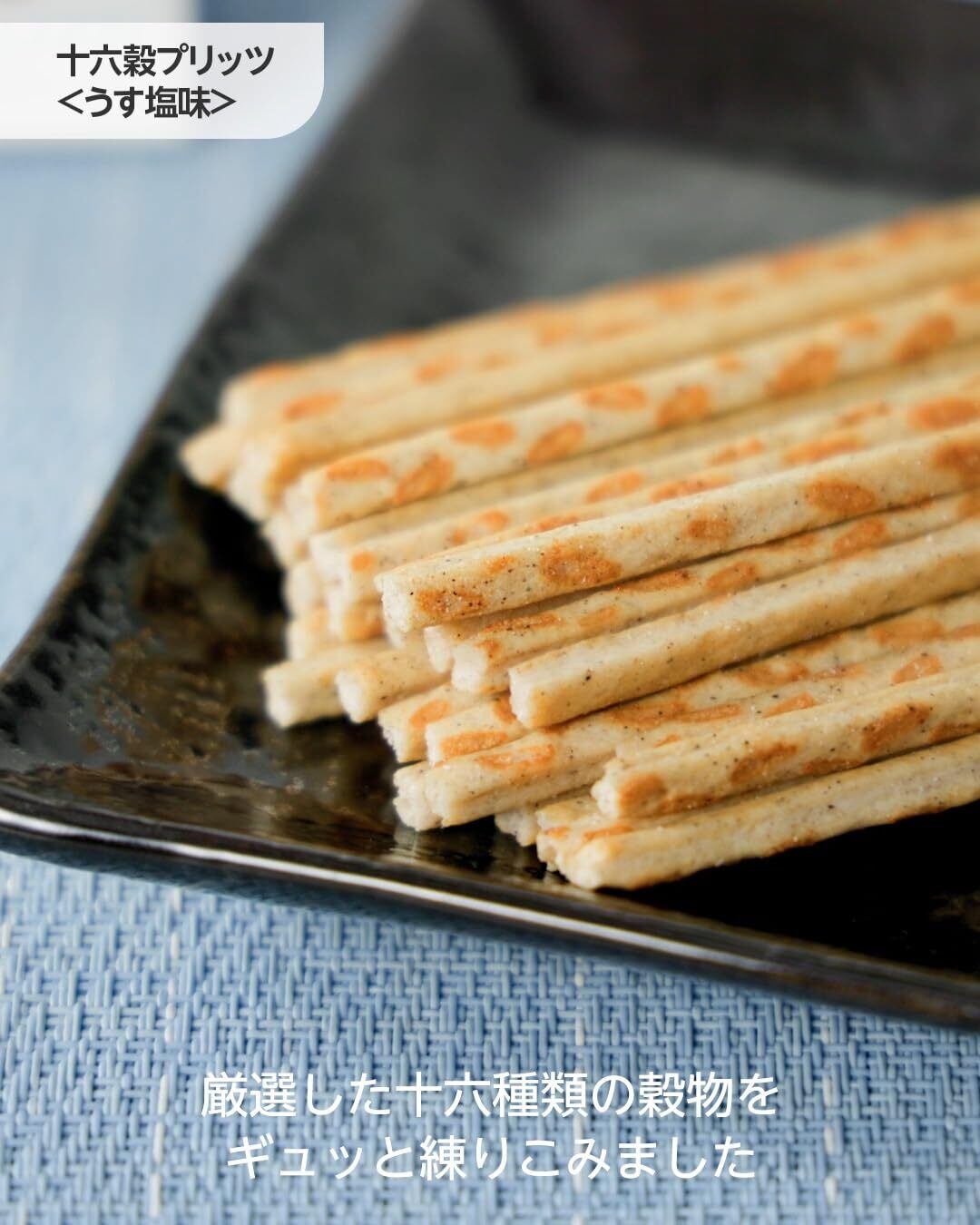厳選した十六種類の穀物をギュッと練りこんだプリッツです。