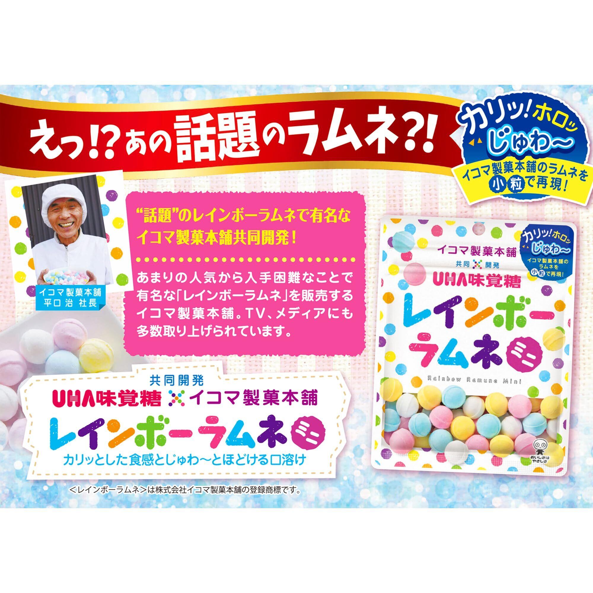 イコマ製菓本舗と共同開発を行うことで、外はカリッとした食感、中はフワッとした口どけのレインボーラムネの独特な味わいを再現しました。