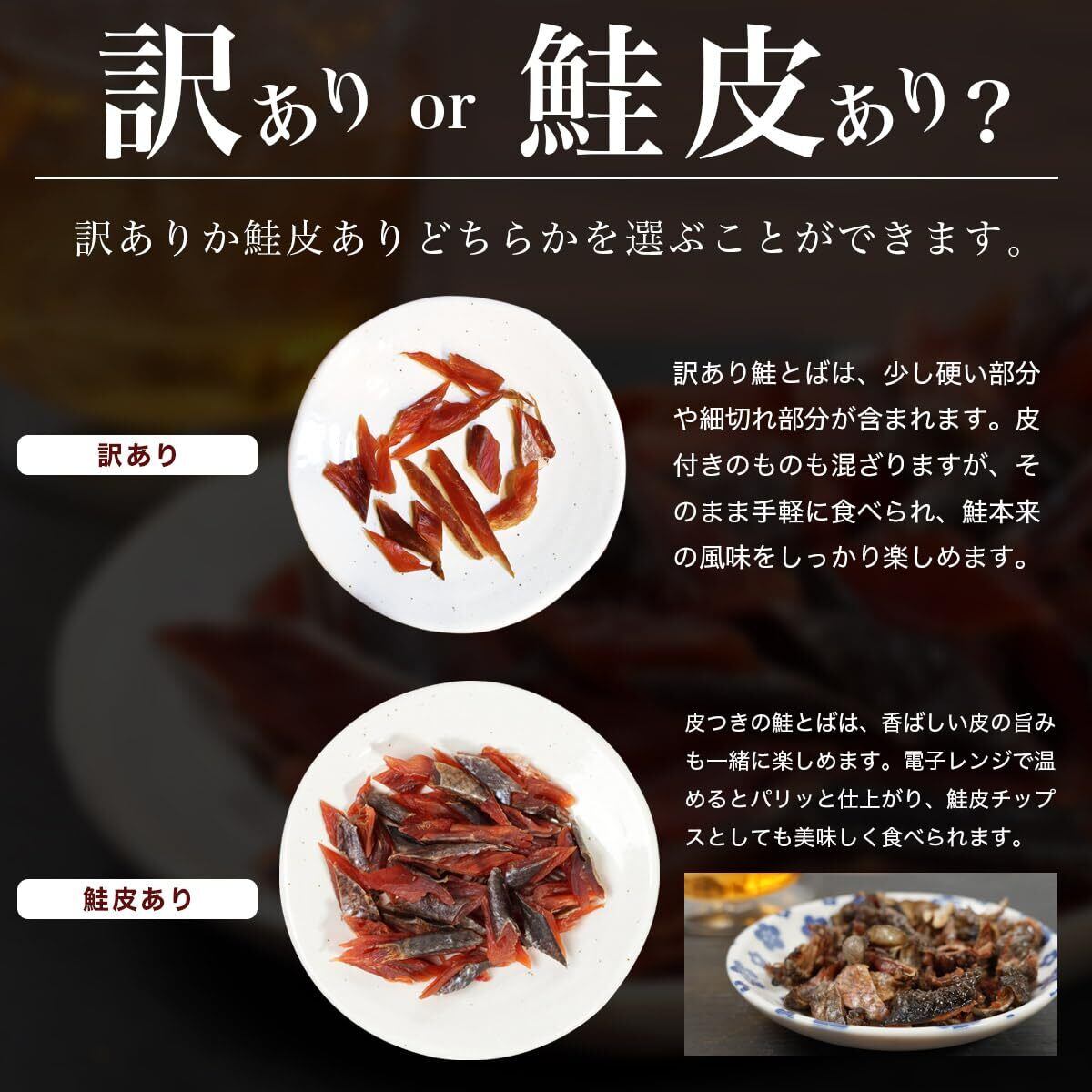 訳ありor 鮭皮付き 選べる 北海道産 カットサーモン 鮭 しゃけ シャケ とば トバ 鮭とば 鮭トバ 大容量 珍味 おつまみ (280g, 訳あり)